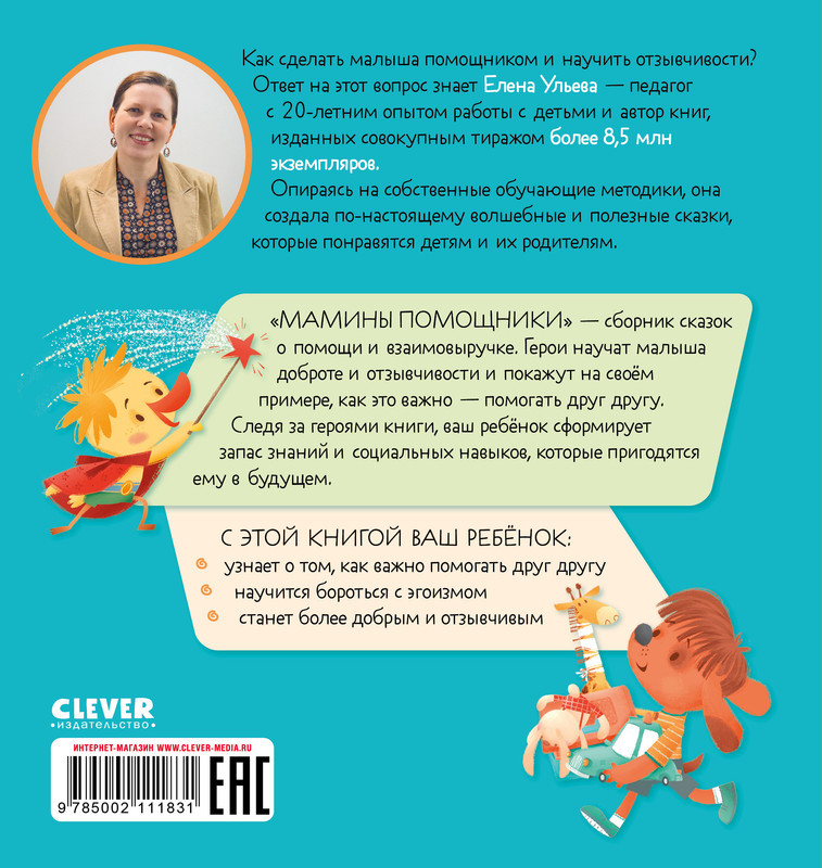 💳 Оплатить за товар можно при получении 🇰🇿 Есть бесплатная доставка по Казахстану от 1 дня 🎁 Копите бонусы с каждой покупки Серия: Помогающие сказки В сборнике «Мамины помощники» вас ждут добрые истории про милых зверят, которые покажут маленьким читателям пример взаимовыручки и заботы о близких. Ваш малыш узнает, как щенок научился убирать игрушки, как котенок заботился о братишке, а утенок бабушке помогал. Проговорите сюжеты сказок вместе с ребенком, обсудите действия персонажей. Спросите, как бы он поступил в схожей ситуации? Следя за маленькими героями, малыш сформирует запас знаний и социальных навыков, которые пригодятся ему в будущем. На последних страницах книги вы найдете вопросы по сказкам — так ребенок сможет закрепить полученные знания, а еще потренировать навык пересказа. |