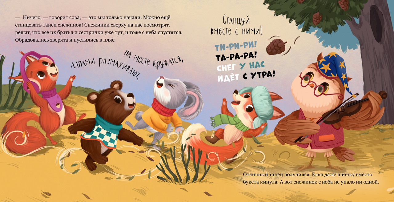 Серия: Книжки-картинки Книжка с картинками «Как зверята спасли Новый год» приглашает малыша в сказку и с помощью заданий помогает ему поучаствовать в сюжете. Новый год уже почти наступил, а снег в лесу так и не выпал! Чтобы помочь зверятам, ребенку нужно будет спеть песенку про снег, станцевать танец снежинки и даже пощекотать тучку. А потом, конечно, порадоваться долгожданному снегопаду! |