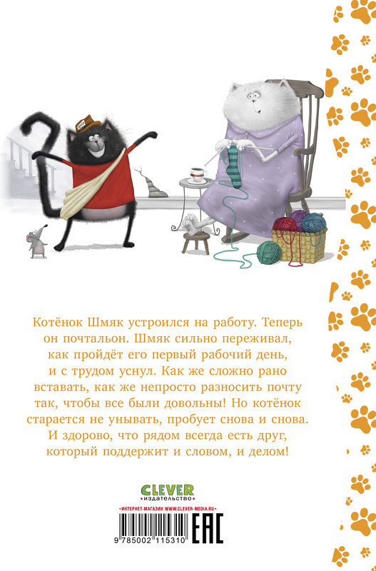 Серия: Котенок Шмяк История про котенка Шмяка в новом оформлении! Котёнок Шмяк устроился на работу. Теперь он почтальон. Шмяк сильно переживал, как пройдет его первый рабочий день, и с трудом уснул. Как же сложно рано вставать, как же непросто разносить почту так, чтобы все были довольны! Но котенок старается не унывать, пробует снова и снова. И здорово, что рядом всегда есть друг, который поддержит и словом, и делом! |