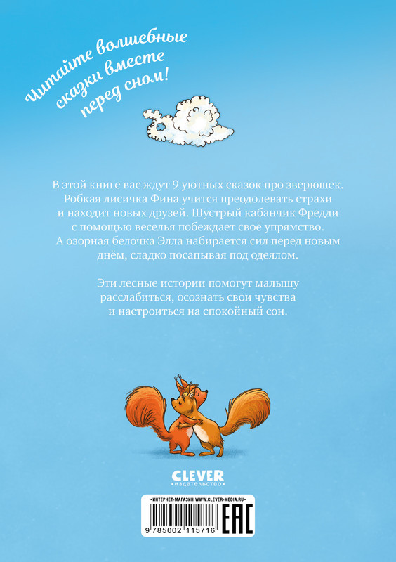 Серия: Большая сказочная серия В этой книге вас ждут 9 уютных сказок про зверюшек. Эти лесные истории помогут малышу расслабиться, осознать свои чувства и настроиться на спокойный сон. Робкая лисичка учится преодолевать страхи и находит новых друзей. Шустрый кабанчик с помощью веселья побеждает свое упрямство. А озорная белочка набирается сил перед новым днем, сладко посапывая под одеялом. |