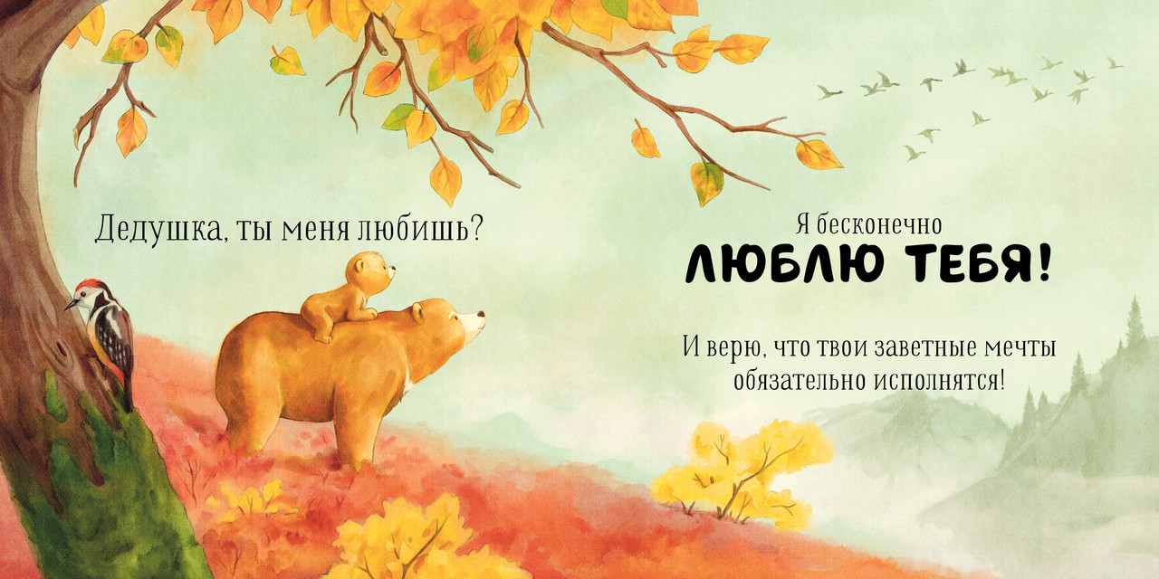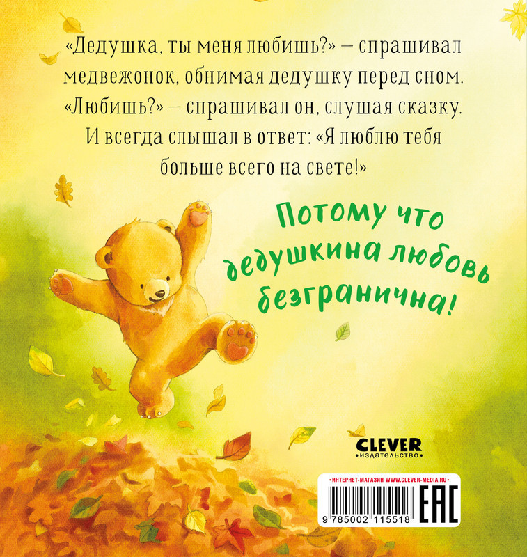 В данный момент этот товар отсутствует в продаже. Возможно, у нас найдется аналогичный или похожий товар здесь. Серия: Семейные ценности «Дедушка, ты меня любишь?» — спрашивал медвежонок, обнимая дедушку перед сном. «Любишь?» — спрашивал он, слушая сказку. И всегда слышал в ответ: «Я люблю тебя больше всего на свете!» Потому что дедушкина любовь безгранична!
