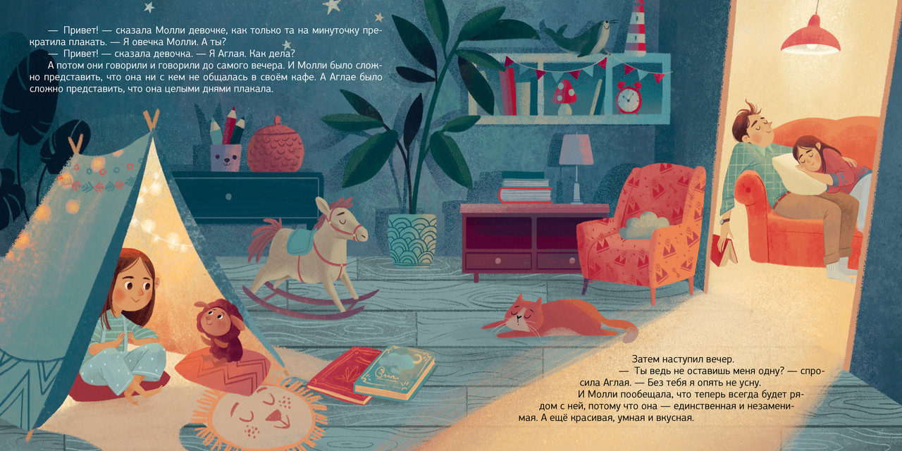 Серия: Книжки-картинки «Колыбельная овечки» — добрая и волшебная сказка о шоколадной овечке и крошечной девочке. Молли — маленькая шоколадная овечка. Она живет в кафе рядом с пирожками Мышкой и Хрюшкой, недалеко от Пряничного Зайца и зефирной Лапы. Молли красивая и умная, очень вкусная и немного вредная — она считает себя лучше всех других пирожных. В один из морозных зимних дней размеренная жизнь Молли изменилась: в кафе пришла молодая пара и забрала ее! Уверенной овечке вдруг стало очень страшно — куда же ее везут? Где она теперь будет жить? Молли очутилась в большом и красивом доме рядом с маленькой плачущей девочкой. Девочку звали Аглая, а плакала она потому, что никак не могла заснуть. Каждый день перед сном Аглая считала овечек и каждый раз ей не хватало ровно одной овечки. Только Молли могла ей помочь! Молли часто вела себя высокомерно, но сердце у нее было доброе. Она отправилась на бескрайние Сонные поля, чтобы помочь девочке. Как у нее получилось? Узнаете в этой трогательной зимней сказке! Эта очаровательная история проникнута добром и волшебством. Она понравится не только малышам, но и родителям. Чудесные иллюстрации для этой книги создала художница Маргарита Кухтина. Маргарита работает с российскими и европейскими издателями, а ее иллюстрации любят дети по всему миру. |