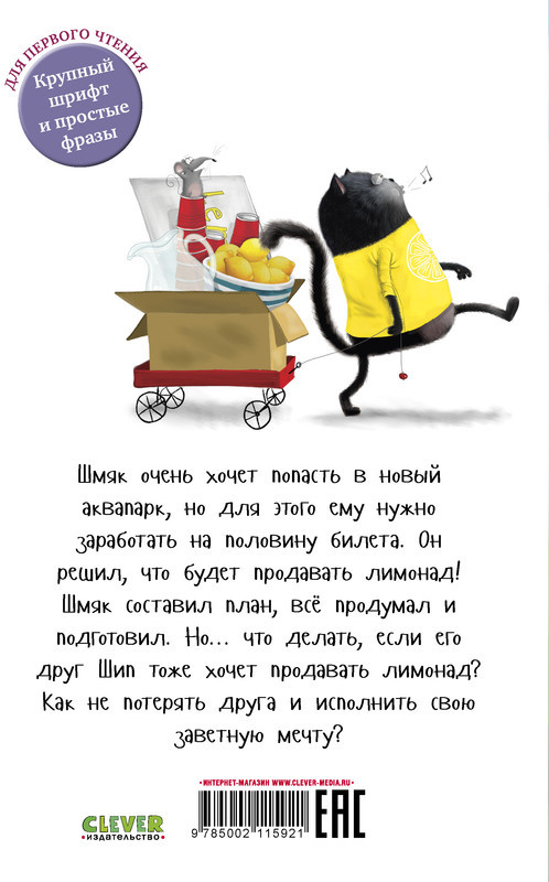 Серия: Котенок Шмяк Любимые истории про котенка Шмяка теперь и в мягкой обложке! Шмяк очень хочет попасть в новый аквапарк, но для этого ему нужно заработать на половину билета. Он решил, что будет продавать лимонад! Шмяк составил план, всё продумал и подготовил. Но... что делать, если его друг Шип тоже хочет продавать лимонад? Как не потерять друга и исполнить свою заветную мечту? |
