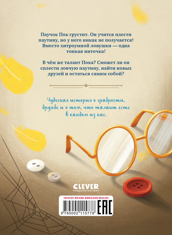 Серия: Clever-чтение Чудесная история о храбрости, дружбе и о том, что талант есть в каждом из нас. Паучок Пок грустит. Он учится плести паутину, но у него никак не получается! Вместо хитроумной ловушки одна тонкая ниточка! В чём же талант Пока? Сможет ли он сплести ловчую паутину, найти новых друзей и остаться самим собой? |