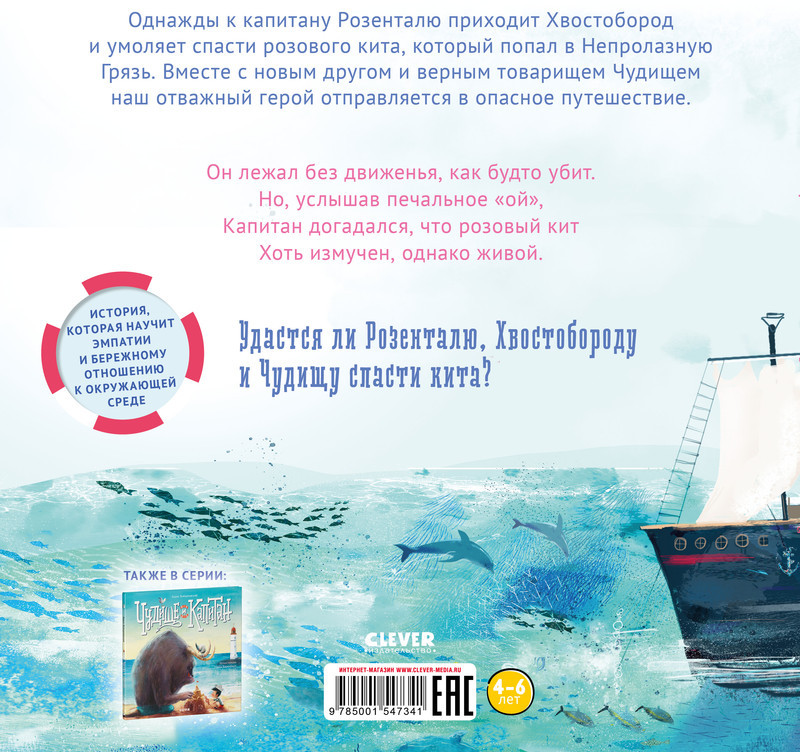 Серия: Книжки-картинки Эта книга — продолжение любимой истории «Чудище и капитан» с великолепными иллюстрациями и ритмичными стихами. Однажды к юному капитану Борису Розенталю приходит Хвостобород и умоляет спасти розового кита, который попал в Непролазную Грязь. Вместе с новым другом Чудищем наш отважный герой отправляется в опасное путешествие. Удастся ли освободить кита и какие еще приключения им предстоят? История научит эмпатии и бережному отношению к окружающей среде. Книжки-картинки — идеальный формат для занятий с ребенком, в них грамотно сочетаются картинки и текст. Такие книги учат дружить, принимать и любить себя, не судить по первому впечатлению, нестандартно мыслить, заботиться друг о друге. Книгу создал Борис Войцеховский, популярный детский поэт и прозаик, журналист и папа трех детей. |