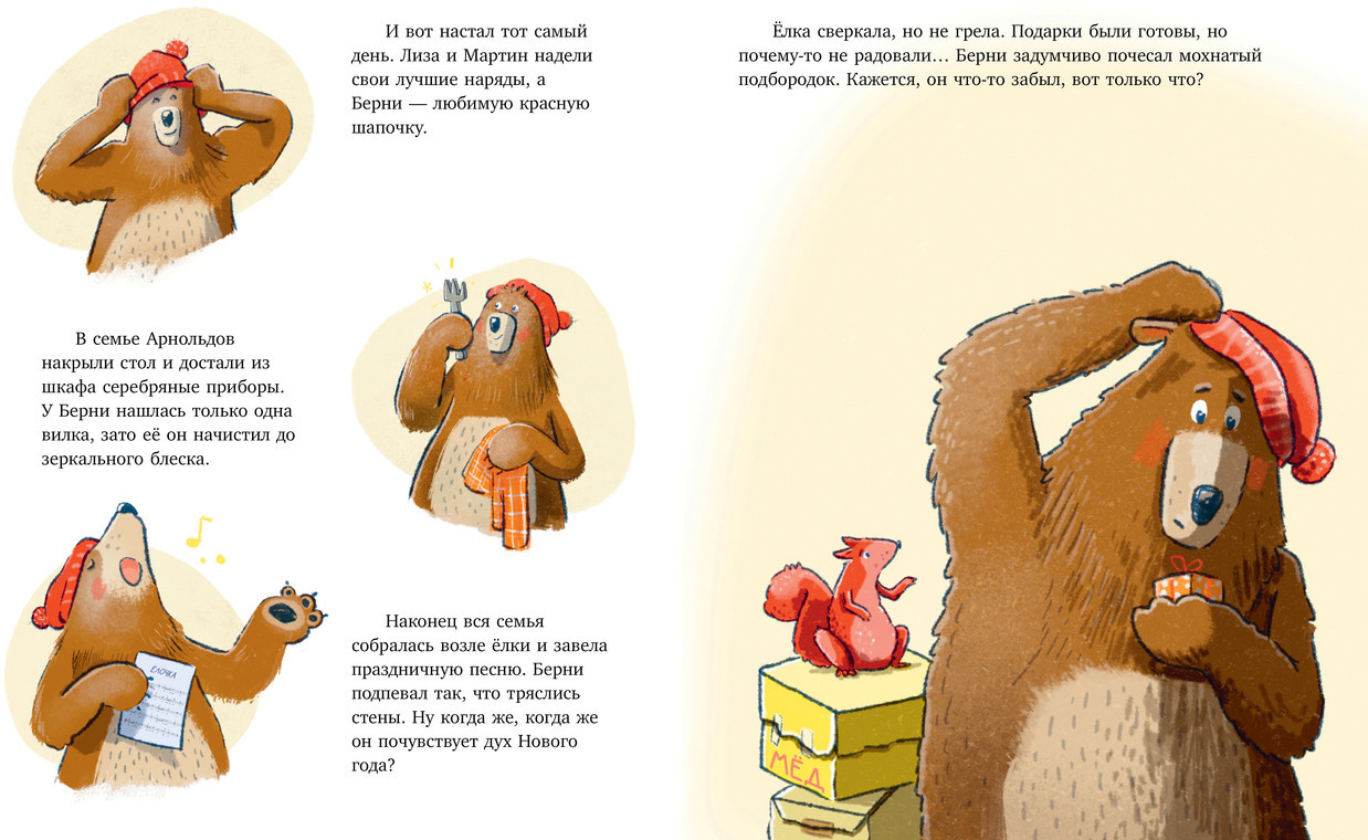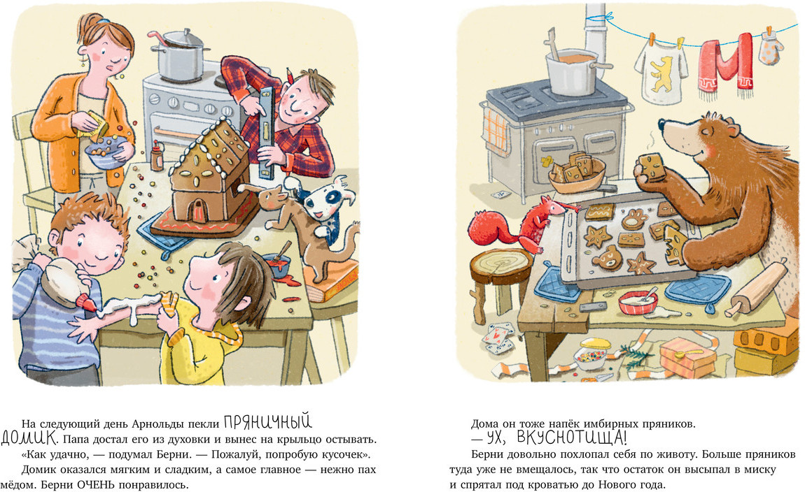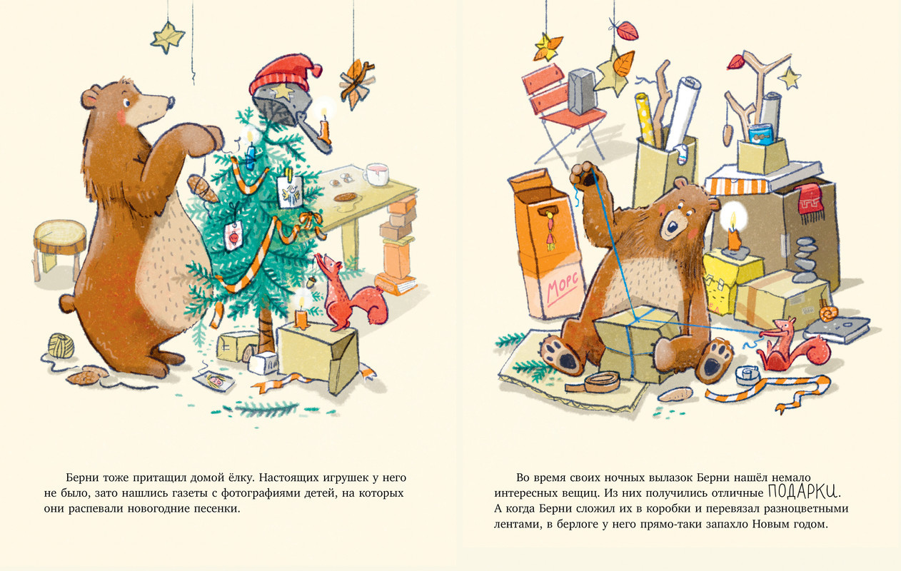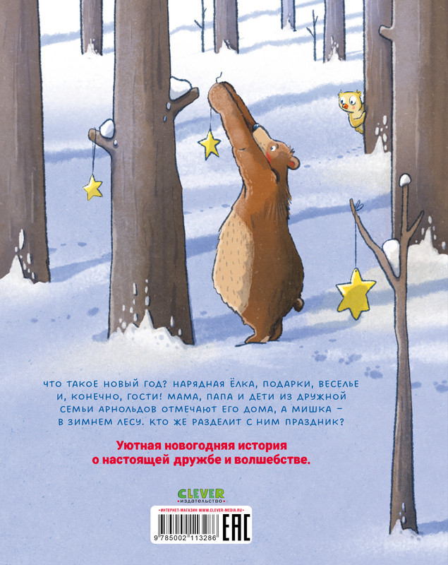 Как мишка встречал Новый годновинка В данный момент этот товар отсутствует в продаже. Возможно, у нас найдется аналогичный или похожий товар здесь. Серия: Книжки-картинки «Как мишка встречал Новый год» — уютная и смешная история, которая раскроет секрет идеального праздника. Что такое Новый год? Украшения, нарядная елка, ароматное печенье и, конечно, подарки. Все это лесной мишка Берни узнал, наблюдая за дружной семьей Арнольдов из соседней деревни. Мама, папа и двое детишек Арнольдов готовятся к празднику дома, а мишка — в зимнем лесу. У Берни уже есть и елка, и угощения, и даже подарки — чего же не хватает? Узнайте, как мишка встречал Новый год! Книжка с картинками большого формата с красочными иллюстрациями станет прекрасным подарком маленькому читателю и обеспечит всей семье праздничное настроение. Рассматривайте на картинках любимые новогодние детали — чудесный пряничный домик, бумажные звезды, гирлянды и свечи — и готовьтесь к Новому году вместе с Берни! |