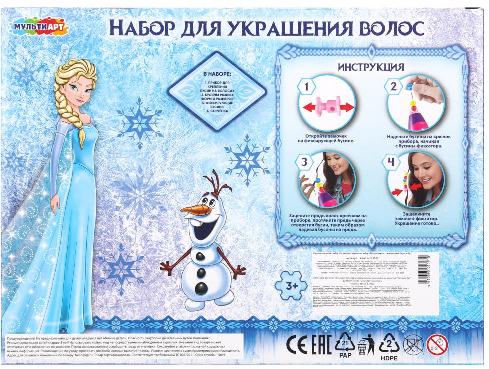 Multi Art Набор с бусинами для волос «Снежная принцесса»новинка В данный момент этот товар отсутствует в продаже. Возможно, у нас найдется аналогичный или похожий товар здесь. Набор с бусинами для волос «Снежная принцесса» ТМ «Мульти Арт» — отличный подарок для маленьких модниц. Юной рукодельнице непременно понравится этот красочный набор для создания модных украшений для волос в её стиле. В наборе уже есть всё необходимое, включая инструкцию, чтобы создавать самые красивые и яркие образы. Чтобы процесс украшения прошёл легко и быстро, в комплекте имеется специальный прибор с крючком, который помогает зацепить прядь и протянуть её через отверстия бусинок. Специальная бусина с замочком позволяет зафиксировать созданную композицию. |