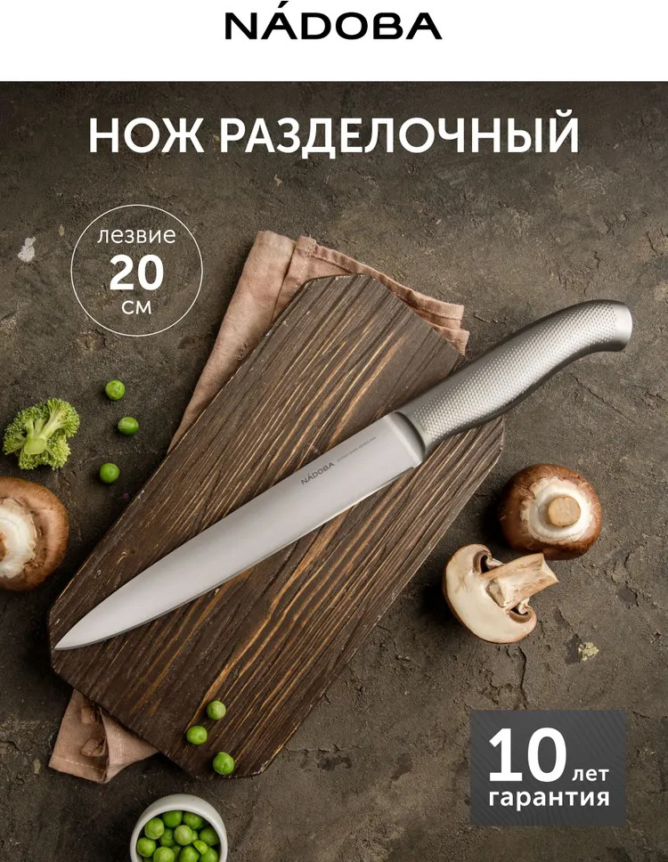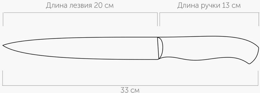 Нож кухонный разделочный 20 см — универсальный кухонный инструмент, который незаменим для профессиональных поваров и любителей кулинарии. Он способен заменить нож для карвинга и разделки. Изготовлен из нержавеющей стали, которая обеспечивает долговечность и легкость ухода. Имеет большой размер и острое лезвие, которое идеально подходит для множества кухонных задач, включая нарезку и очистку овощей, фруктов, мяса, а также для подготовки продуктов к приготовлению различных блюд. Рукоять удобно лежит в руке, не выскальзывает и обеспечивает безопасную работу с ножом, а также имеет антибактериальный эффект.