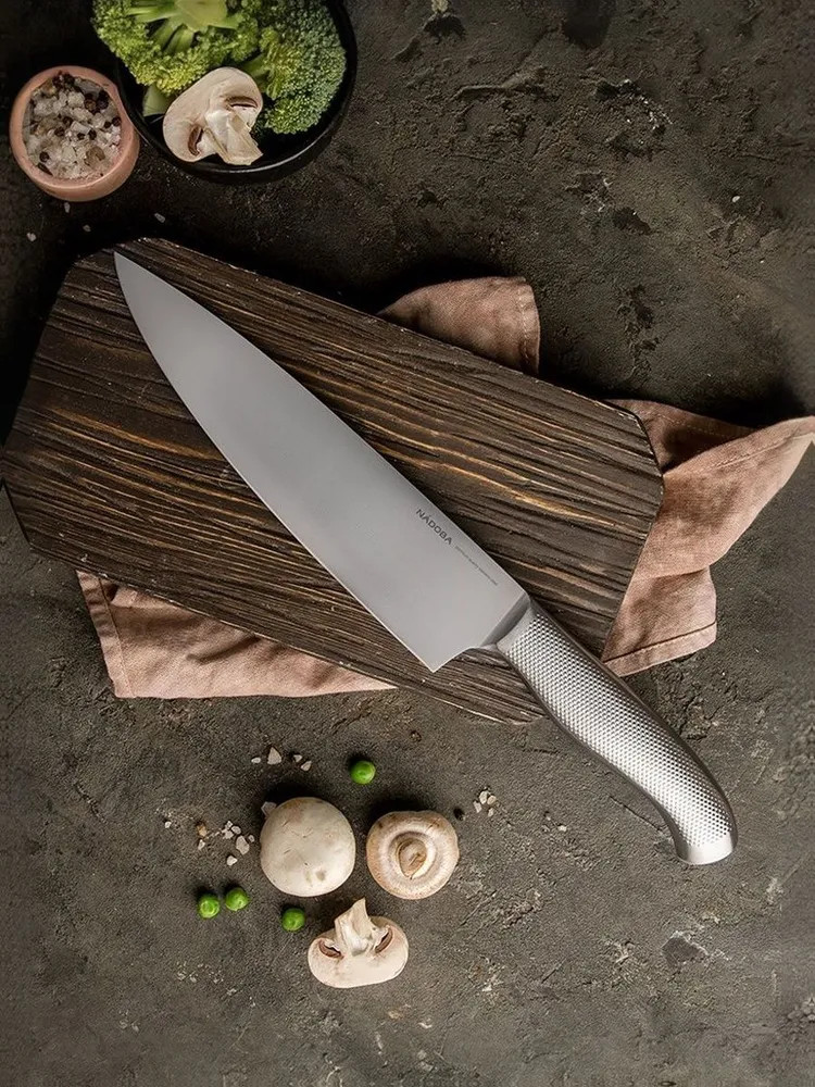 Серия: Robi Нож кухонный поварской 20 см — универсальный кухонный инструмент, который незаменим для профессиональных поваров и любителей кулинарии. Он способен заменить нож для карвинга и разделки. Изготовлен из нержавеющей стали, которая обеспечивает долговечность и легкость ухода. Имеет большой размер и острое лезвие, которое идеально подходит для множества кухонных задач, включая нарезку и очистку овощей, фруктов, мяса, а также для подготовки продуктов к приготовлению различных блюд. Рукоять удобно лежит в руке, не выскальзывает и обеспечивает безопасную работу с ножом, а также имеет антибактериальный эффект. |