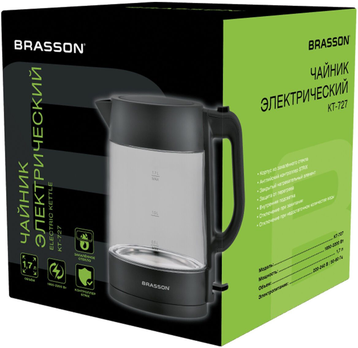 Электрический чайник Brasson KT-727 превратит рутинное кипячение воды в приятный и безопасный процесс. Современный дизайн и отличная функциональность делают его незаменимым помощником на каждой кухне. Мощность прибора составляет 2200 Вт, что позволит воде закипеть за считанные минуты. На ручке чайника находится кнопка открывания, что делает удобнее его эксплуатацию. Корпус изготовлен из термостойкого стекла. Скрытый нагревательный элемент увеличит срок службы. Индикатор уровня воды позволит с легкостью определить количество воды в чайнике.