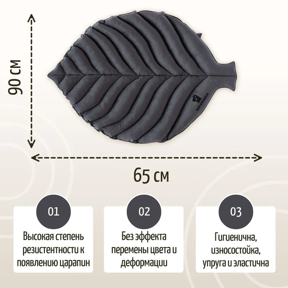 Оригинальная лежанка Mr.Kranch в форме листочка станет настоящим украшением домашнего интерьера. Лежанка выполнена из прочного мебельного велюра и отличается высокой степенью резистентности к появлению царапин и зацепок. Без эффекта перемены цвета. Отстрочка нейлоновой нитью предотвращает лежанку от деформации и появления микроразрывов. Наполнитель лежанки — холлофайбер ПАФС — представляет из себя нити полиэфирного волокна, скрученные в шарики диаметром около 7 мм. Гигиеничен, не впитывает запахи и влагу, хорошо пропускает воздух. Легко восстанавливается после сжатия, износостойкий, упругий и эластичный. Не скатывается и не рассыпается, не накапливает статическое электричество.