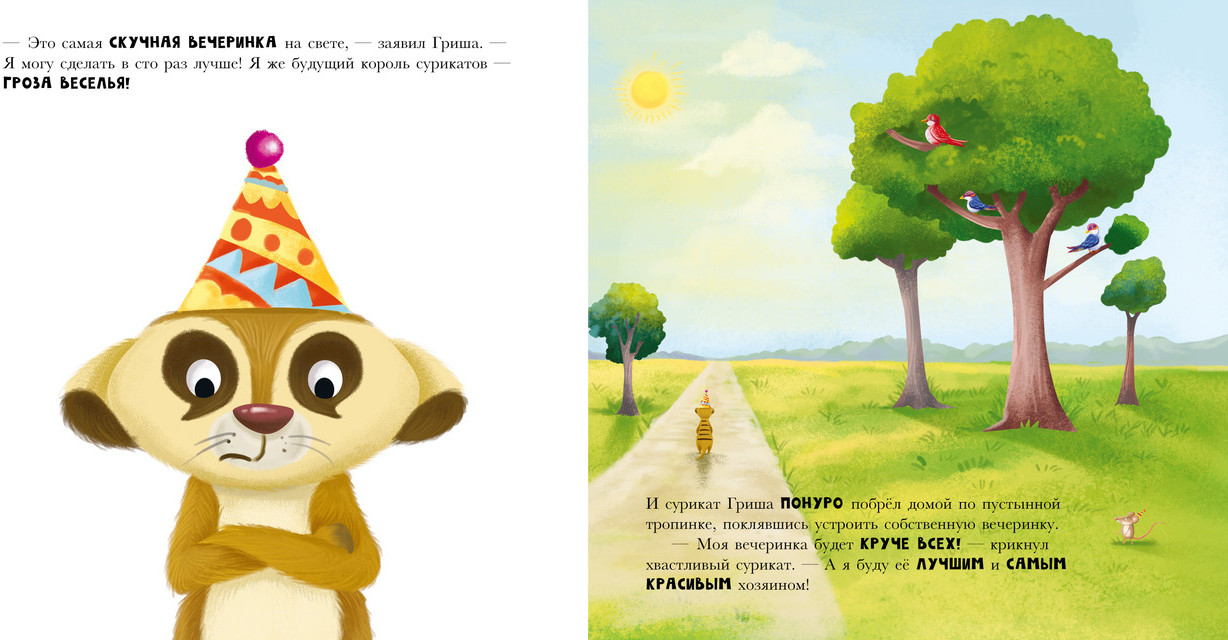 Серия: Книжки-картинки Эта забавная и поучительная сказка поможет малышу освоить хорошие манеры, объяснит, как вести себя вежливо и завести новых друзей! Сурикат Гриша ведет себя невежливо: часто теснит и толкает других зверят, а за столом громко чавкает и жадно отбирает еду. Однажды сурикат Гриша пришел в гости к обезьянке Моне. Сначала он забрал все конфеты, затем за обе щёки уплетал самые большие куски торта и грубил остальным гостям. После этого зверята перестали звать Гришу играть вместе и никто из них не пришел на его вечеринку. Тогда Гриша впервые задумался: может, хорошие манеры помогут ему вернуть расположение друзей? |