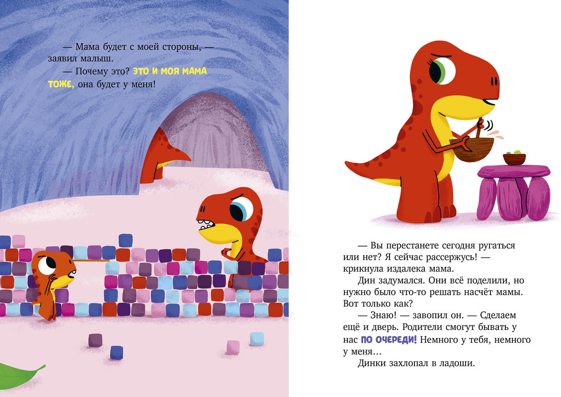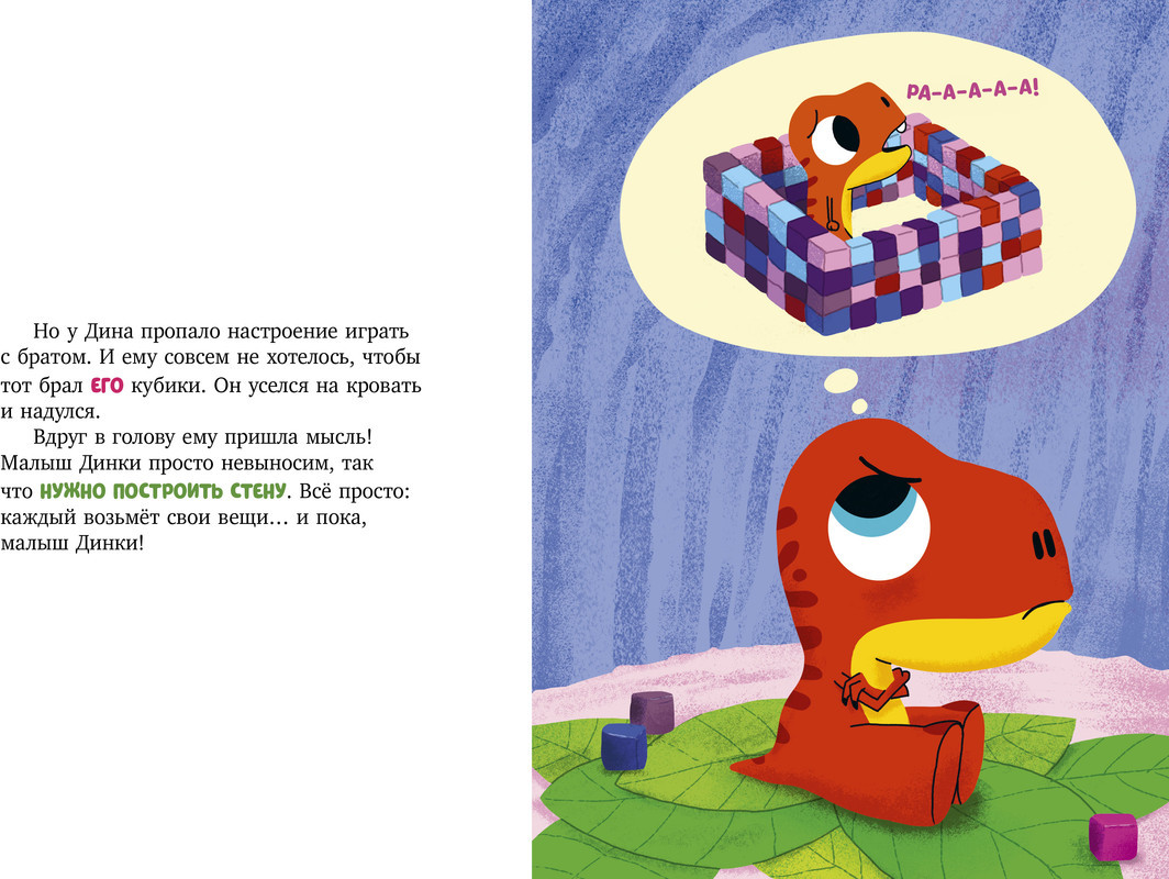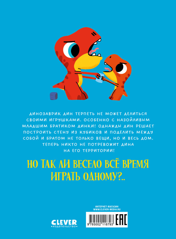Серия: Приключения динозаврика Дина «Динозаврик Дин не хочет делиться!» — новая книжка-картинка, которая обязательно привлечет внимание малышей 2, 3, 4 лет. Терапевтическая сказка о маленьком динозаврике, который не любил, когда младший брат брал его игрушки, поможет детям лучше понять свои эмоции. Динозаврик Дин решил построить стену, чтобы разделить с маленьким братишкой игрушки и чтобы никто больше не мешал ему играть. Но разве весело играть одному? Веселая и эмоциональная сказка про приключения древних животных — милых динозавров — понравится детям и научит строить отношения, договариваться и играть вместе. Сказкотерапия — лучшее воспитание, она подскажет родителям, что нужно обсудить со своими малышами, чтобы помочь им общаться. |