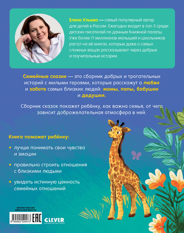 В данный момент этот товар отсутствует в продаже. Возможно, у нас найдется аналогичный или похожий товар здесь. Серия: Семейные ценности Книжка с добрыми познавательными сказками о семье и любви близких — прекрасный сборник для чтения как дома, так и в детском саду. Автор терапевтических сказок — педагог и самый читаемый детский писатель Елена Ульева. С помощью сказкотерапии она расскажет, почему так важно время, проведенное с родными, почему так ценна любовь родителей.
