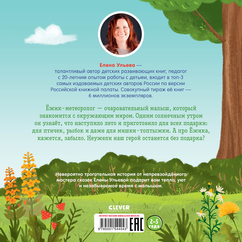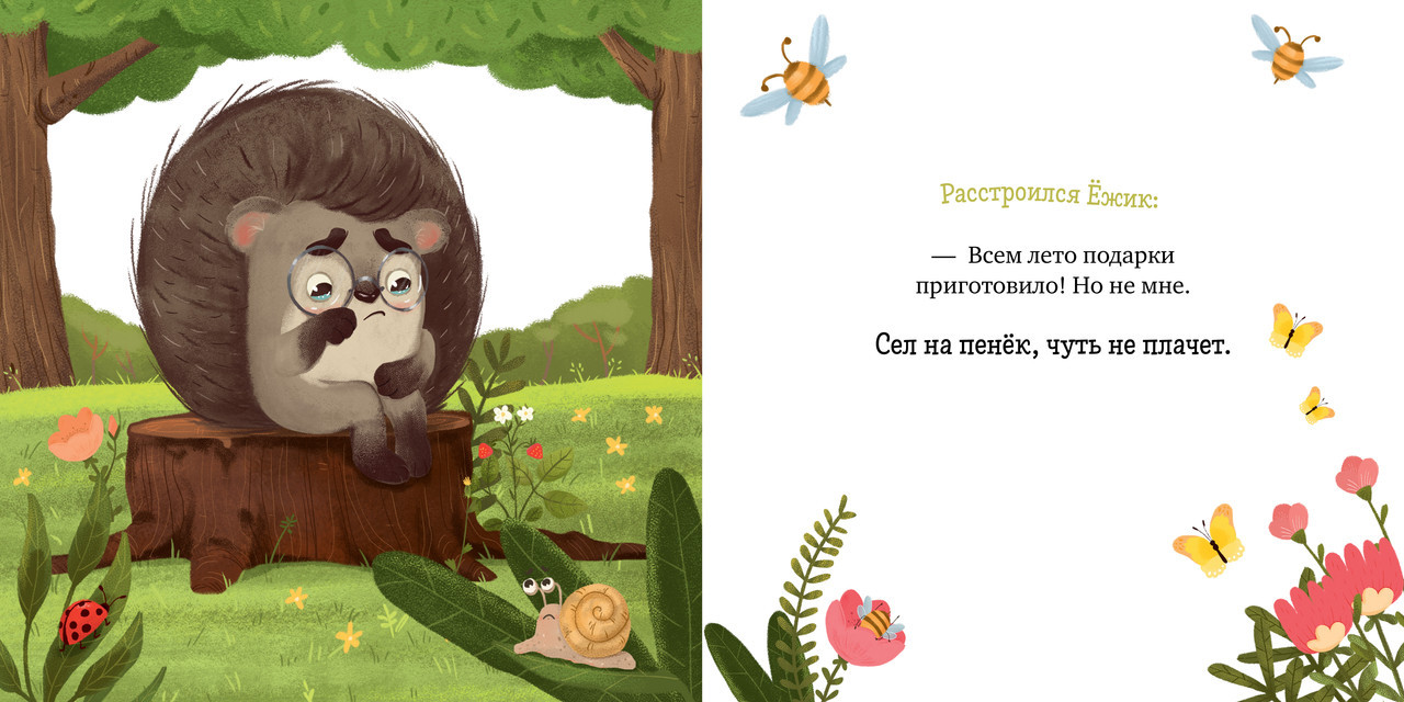 Ёжик и солнечное летоновинка В данный момент этот товар отсутствует в продаже. Возможно, у нас найдется аналогичный или похожий товар здесь. Серия: Книжки-картинки Это познавательная сказка с нежными иллюстрациями, которая расскажет малышу об отличительных приметах лета, о том, что происходит в природе и что делают лесные жители в это время. Ежик — очаровательный малыш, который знакомится с окружающим миром. Одним солнечным утром он узнает, что наступило лето и приготовило для всех подарки: для птичек, рыбок и даже для мишки-топтыжки. А про Ежика, кажется, забыло. Неужели наш герой останется без подарка? |