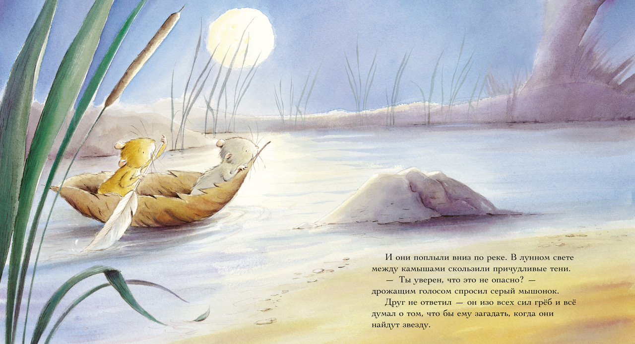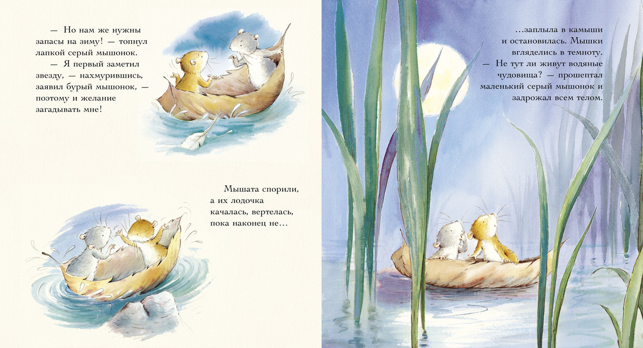 Серый и бурый мышата — лучшие друзья. Однажды они увидели, как по ночному небу пронеслась и упала в озеро Счастливая звезда, исполняющая желания. Нужно скорее отыскать ее! Но вот незадача: звездочка-то одна, значит, желание можно исполнить всего одно. Какое же выберут друзья?