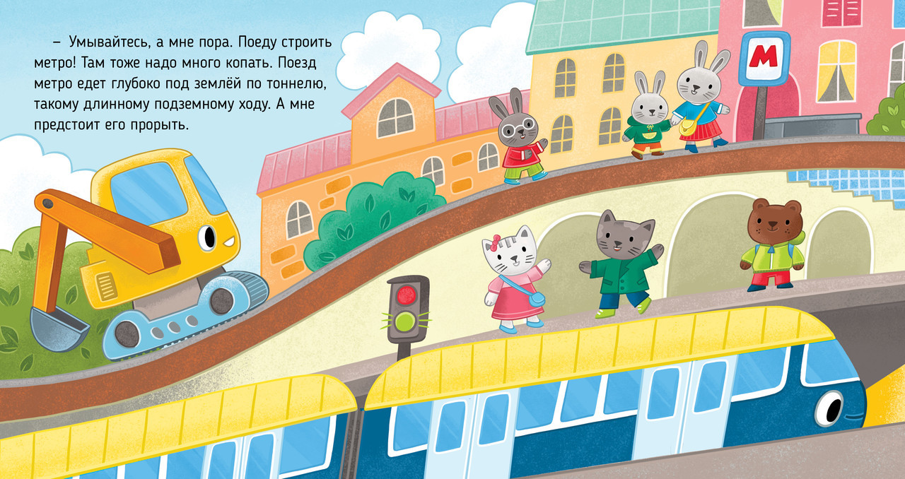 «Экскаватор помогает малышам» — добрая сказка для малышей про большую полезную машину. Книжка расскажет маленьким читателям, как работает экскаватор, зачем ему нужен ковш и какие еще машины трудятся на стройке.