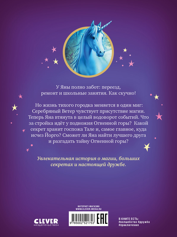💳 Оплатить за товар можно при получении 🇰🇿 Есть бесплатная доставка по Казахстану от 1 дня 🎁 Копите бонусы с каждой покупки Серия: Волшебный единорог «Волшебный единорог. Загадка Огненной горы» — продолжение приключений верных друзей Яны, Йорго и волшебного единорога Серебряный Ветер. Идеальная книга для первого самостоятельного чтения. Жизнь тихого городка, где с родителями живут Яна и Йорго, меняется в один миг: возле Огненной горы начинается большая стройка. Вдруг Серебряный Ветер чувствует присутствие магии. Что это? Почему так волнуется строгая госпожа Тале — учительница школы? И, самое главное, куда исчез Йорго? Сможет ли Яна найти лучшего друга и разгадать тайну Огненной горы? |