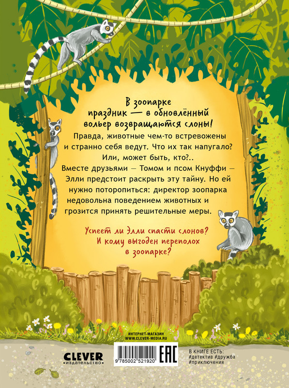 Элли проводит все свободное время в зоопарке и рада тому, что в вольер возвращаются слоны. Но что-то не так. Большая слониха встревожена и не ладит с людьми. В зоопарке переполох, директор грозится принять меры, и, кажется, кому-то это на руку. Элли должна спасти слонов и выяснить, что происходит и кто напугал животных.