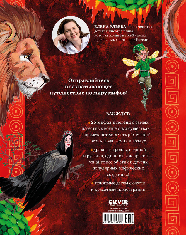 Серия: Мифы и легенды волшебных существ 25 мифов и легенд о самых известных волшебных существах — представителях четырех стихий: огонь, вода, земля и воздух. 25 невероятных историй в пересказе Елены Ульевой, с красивыми иллюстрациями Павла Клементьева.