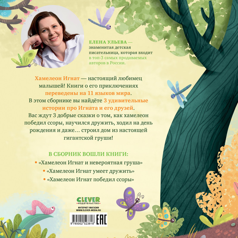 Книжка для малышей «Хамелеон Игнат и невероятная груша» известного детского писателя Елены Ульевой — это сборник из трех поучительных сказок о том, как хамелеон победил ссоры, научился дружить, ходил на день рождения и даже... строил дом из настоящей гигантской груши!