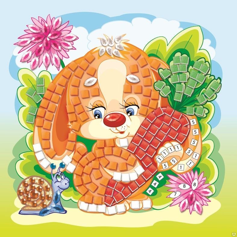 Идея конечно интересная, процесс для ребенка увлекательный. Только вот качество не очень. Красные и зеленые квадратики, что на морковке, блестящие. И вот этот блестящий верх отлетает. Пока наклеили, замучились. Лучше бы они были из простого материала, как зайка. В итоге ребенок расстроился.