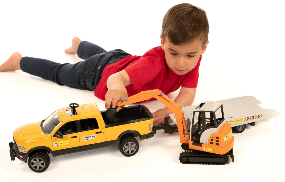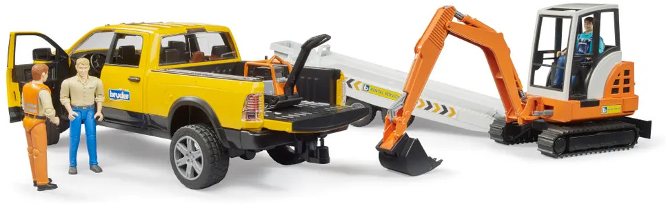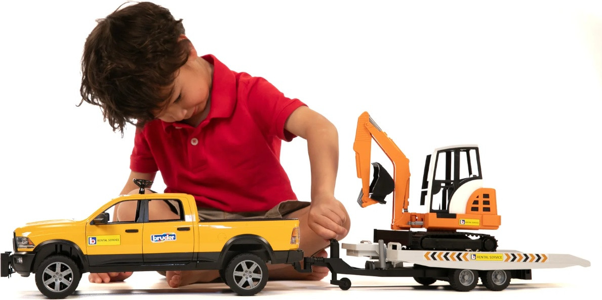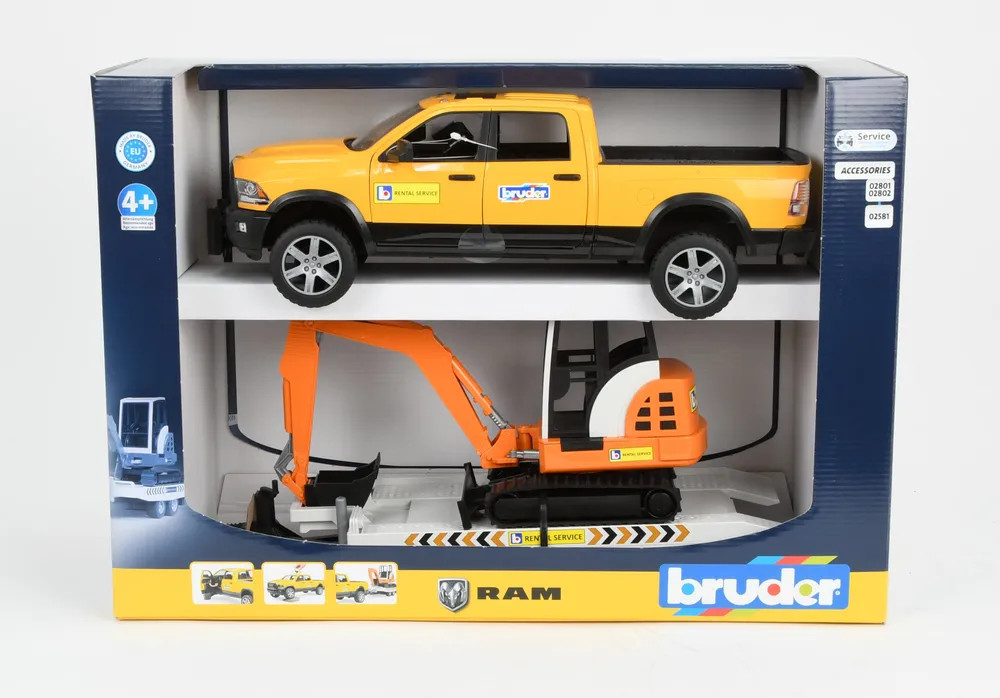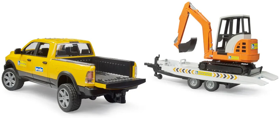 Bruder Джип RAM дорожной службы с трейлером и мини экскаваторомновинка