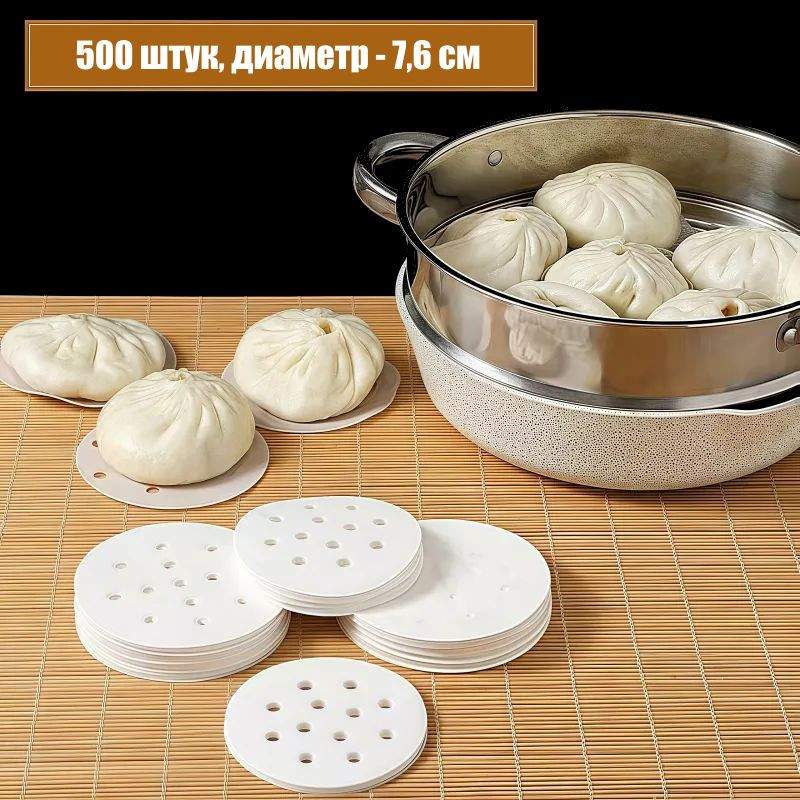 Одноразовые пергаментные силиконизированные круги для пароварки, мантоварки и т.д. Не прилипают к еде и стенкам, устойчивы к высоким температурам, не рвутся и не пропускают жир или влагу. Можно использовать в пароварках, мультиварках, аэрогрилях и духовках. Размер — 76 мм, количество — 500 шт. |