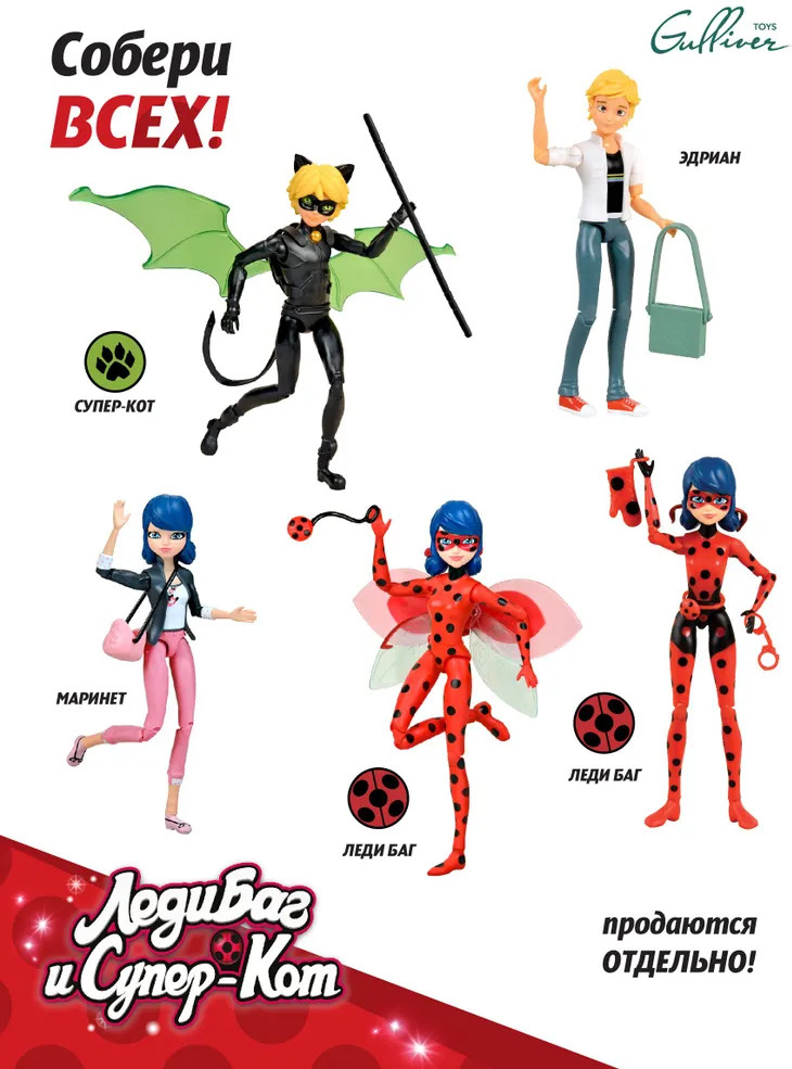 Серия: Леди Баг и Супер Кот Знакомьтесь с тринадцатилетней школьницей Маринет. На первый взгляд она самая обычная девочка, но на самом деле Маринет обладает невероятными способностями! Когда Парижу угрожает опасность, она превращается в супергероиню Леди Баг. Защищать город от преследователей ей помогает таинственный персонаж — Супер-Кот. У подростков есть друзья, которые также тайно перевоплощаются в супер-героев, их невероятные способности помогают работать в команде и бороться со злом в Париже. Игрушки с полюбившимися героями не оставят фанатов мультфильма равнодушными! Широкий ассортимент включает куклы модельного роста и в мини-формате, аксессуары, настольные игры, а также другие игровые наборы для увлекательных игр и полёта фантазии. |