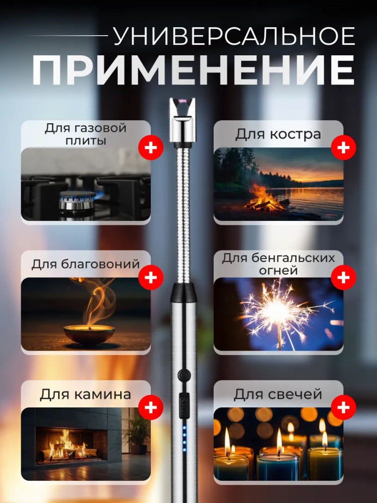 Электронная USB-зажигалка для плиты, свечей, костра и камина. Эта импульсная электронная зажигалка найдёт в вашем доме десятки применений: она легко поджигает газовую плиту, свечи, аромалампы, камин и костёр даже при ветре и холоде. |