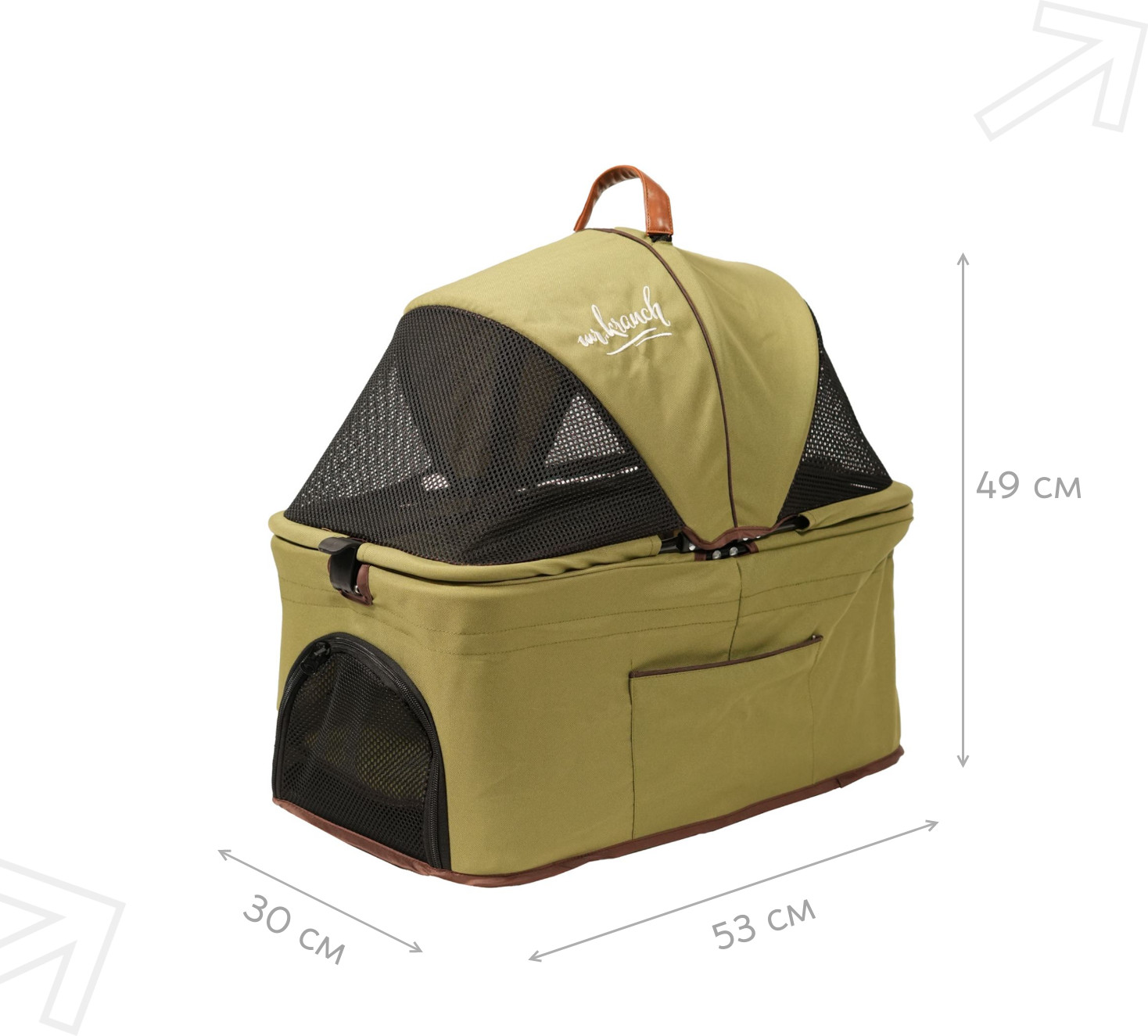 Прогулочная коляска Mr.Kranch — отличное решение для длительных прогулок и путешествий с несколькими питомцами. Коляска достаточно маневренная благодаря поворотному механизму на передних колесах. Самая извилистая дорожка окажется вам ни по чем. На задних колесах удобно расположена педаль для торможения в одно нажатие. На эргономичной ручке находится переключатель для быстрого складывания коляски для транспортировки. Переключатель можно задействовать одной рукой. Коляска Mr.Kranch по-настоящему многофункциональна: ей можно пользоваться по прямому назначению, также и использовать как переноску. Обе корзины отсоединяются. Так вы получите полноценные два товара в одном: одну корзину возможно оставить на шасси, а другую в постоянно отсоединенном виде использовать как переноску. Внутри предусмотрен ремень безопасности для питомца. Люлька: 53×30×49 см. Матрас: 53×30×2 см. |