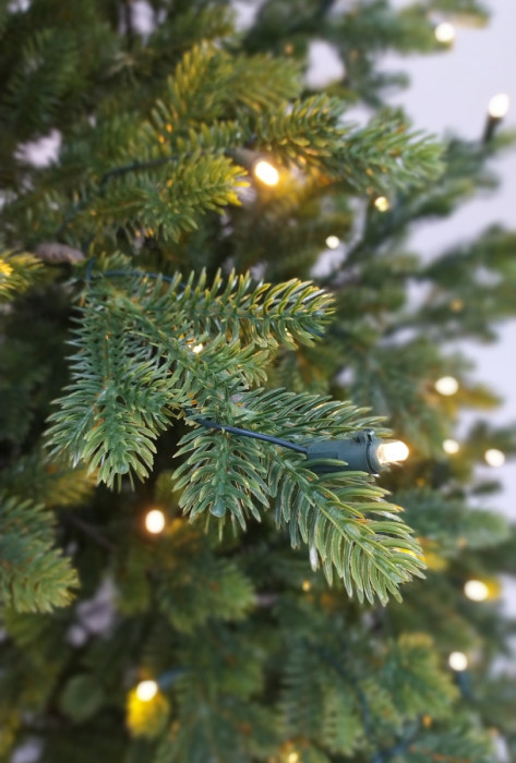 Модель представлена в ростовках от 155 см до 230 см. Ель состоит из верхушки, сборного каркасного ствола и устойчивой металлической подставки. Крепление веток на елку — на шарнирах. Еловые иголочки не осыпаются, не мнутся и не выцветают со временем. Полимерные материалы, из которых они изготовлены, нетоксичны, не пахнут и имеют высокую степень пожаробезопасности EN 71-2.