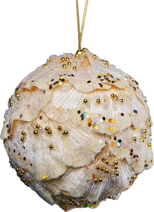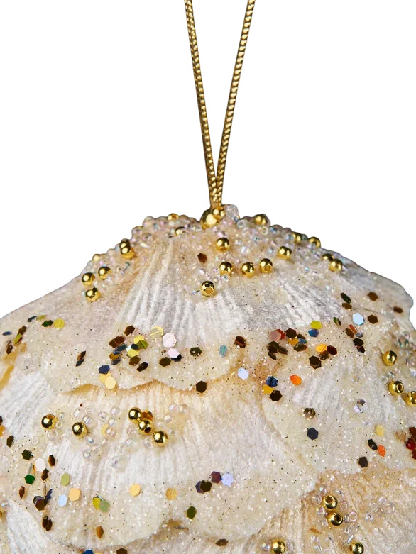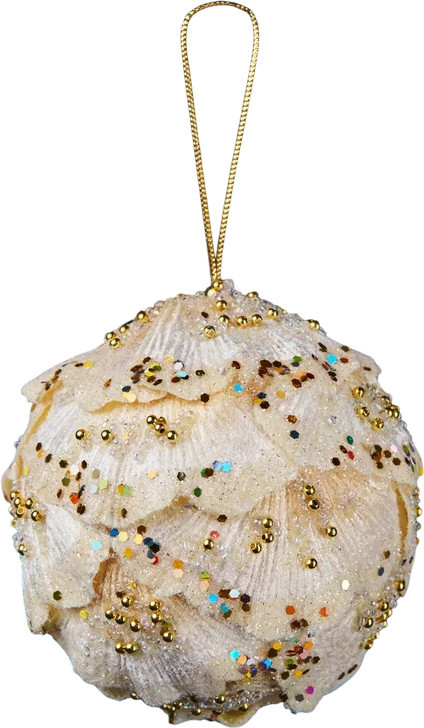 Christmas DeLuxe Винтажный шар из листьев гинго с цветным глиттером и бусинами «Ракушка»