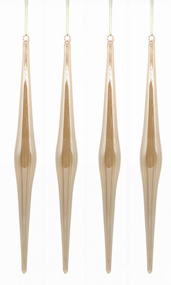 Елочная игрушка «Сосулька» из тонкого стекла — это очень зимнее и интересное украшение для хвойной красавицы. Такая новогодняя игрушка будет отлично смотреться в декоре любого стиля, а прозрачная текстура со множеством изгибов будет красиво преломлять свет и создавать волшебное сияние. Сосульки имеют внушительный размер — 15 см — так что наиболее выигрышно они будут смотреться на больших елках. |
