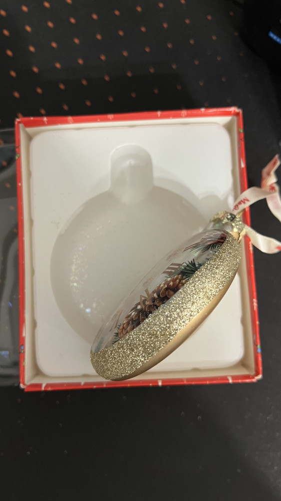 Игрушка пластиковая «под стекло». Плоская, сыпется много мелких блесток. Не стоит своих денег. За эти деньги можно купить настоящие стеклянные игрушки с ручной росписью.