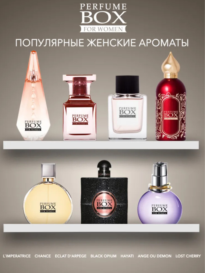 Lanvin JeanneCarolina Herrera Very Good GirlСухие духиТуалетная вода JelaiVersace Bright CrystalNina Ricci туалетная водаТвердые духиMoschino Туалетная водаHugo Boss Туалетная водаElizabeth Arden парфюмированная водаDolce&Gabbana туалетная водаVersace туалетная водаGucci ПарфюмChristian Dior парфюмПарфюм BvlgariLanvinLacoste парфюмByredo парфюмТуалетная вода с феромонамиMontale парфюмEYFEL парфюмированная водаОдеколонТуалетная вода для женщинМужской парфюмЖенский парфюмДухи