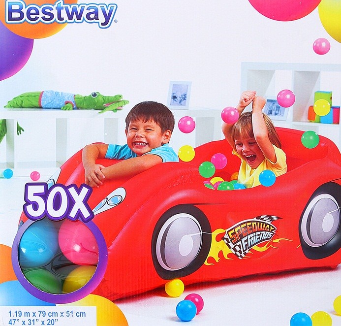 Bestway Игровой центр надувной «Автомобиль» с 50 шариками (119х79х51 см)В данный момент этот товар отсутствует в продаже. Возможно, у нас найдется аналогичный или похожий товар здесь. Игровой центр «Автомобиль» - великолепная оригинальная игрушка для детей от 2 лет. Во всех торговых центрах сейчас часто можно увидеть детские сухие бассейны с цветными шарами, которые так нравятся малышам. Теперь такой бассейн вы сможете установить в детской вашего ребенка и позволить ему резвиться в таком модуле сколько угодно. Этот мини-бассейн в виде гоночной машинки надувается с помощью любого насоса и заполняется 50-ю шарами разных цветов, входящих в комплект игрушки. Ребенок будет в полном восторге от такого подарка и сможет играть с ним один или с друзьями. |
