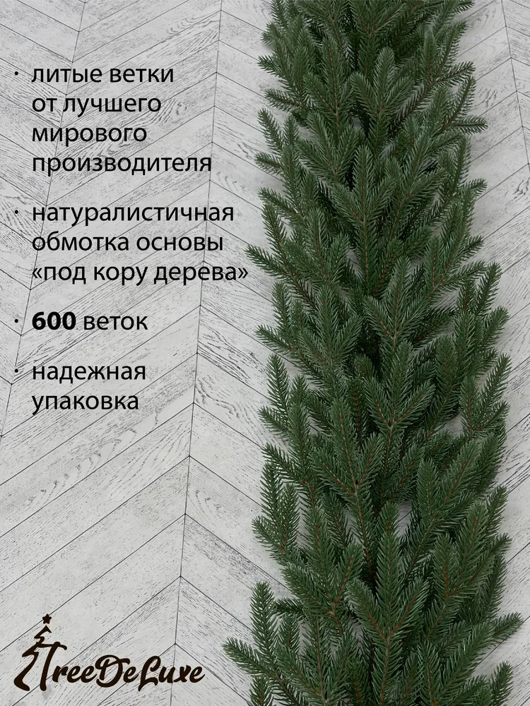TreeDeLuxe Гирлянда хвойная премиум «Русская»новинка В данный момент этот товар отсутствует в продаже. Возможно, у нас найдется аналогичный или похожий товар здесь. Новогодняя хвойная гирлянда «Русская Премиум» 100% литая от бренда TreeDeLuxe — это оригинальная композиция, создающая атмосферу праздника. Уникальность этой хвойной гирлянды в том, что все ее ветви изготовлены методом формованного литья из полиэтилена высочайшего качества (100% РЕ). Литая хвоя — упругая, несминаемая, приятная на ощупь — визуально неотличима от натуральной. Новогодняя хвойная гирлянда отлично подойдет для украшения любого интерьера, особенно камина или дверного проема. Отлично сочетается с елочными украшениями и цветами на клипсах. |
