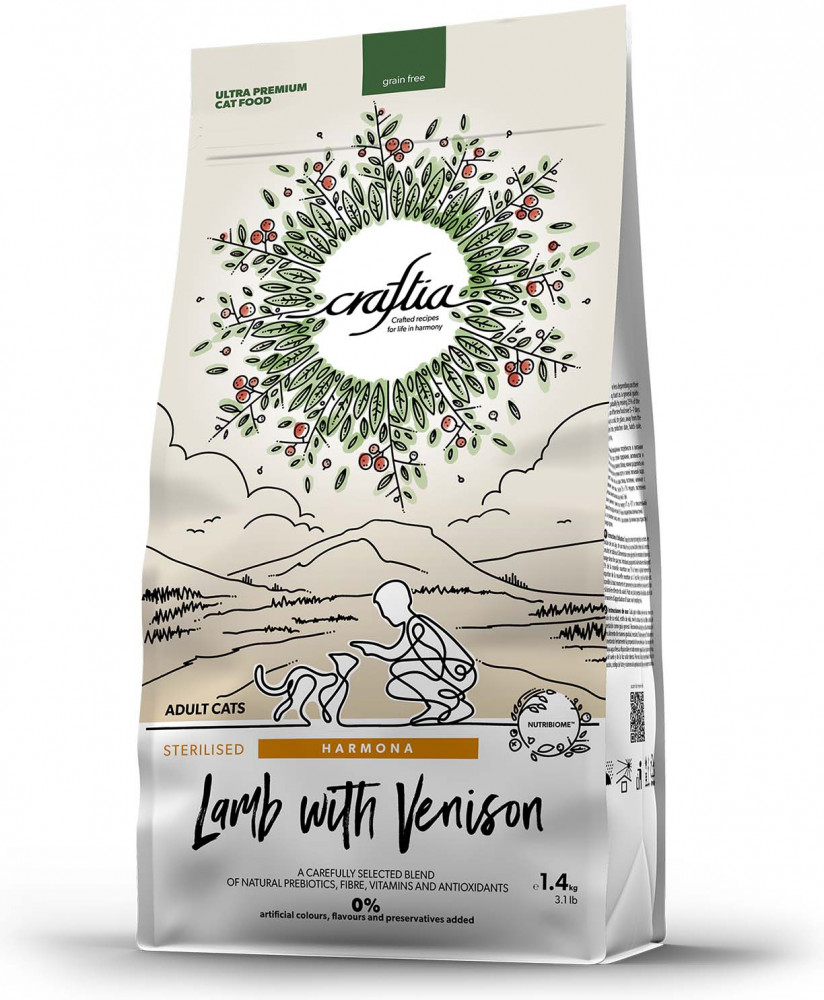 Craftia Корм для стерилизованных кошек из ягнёнка с олениной «Harmona»