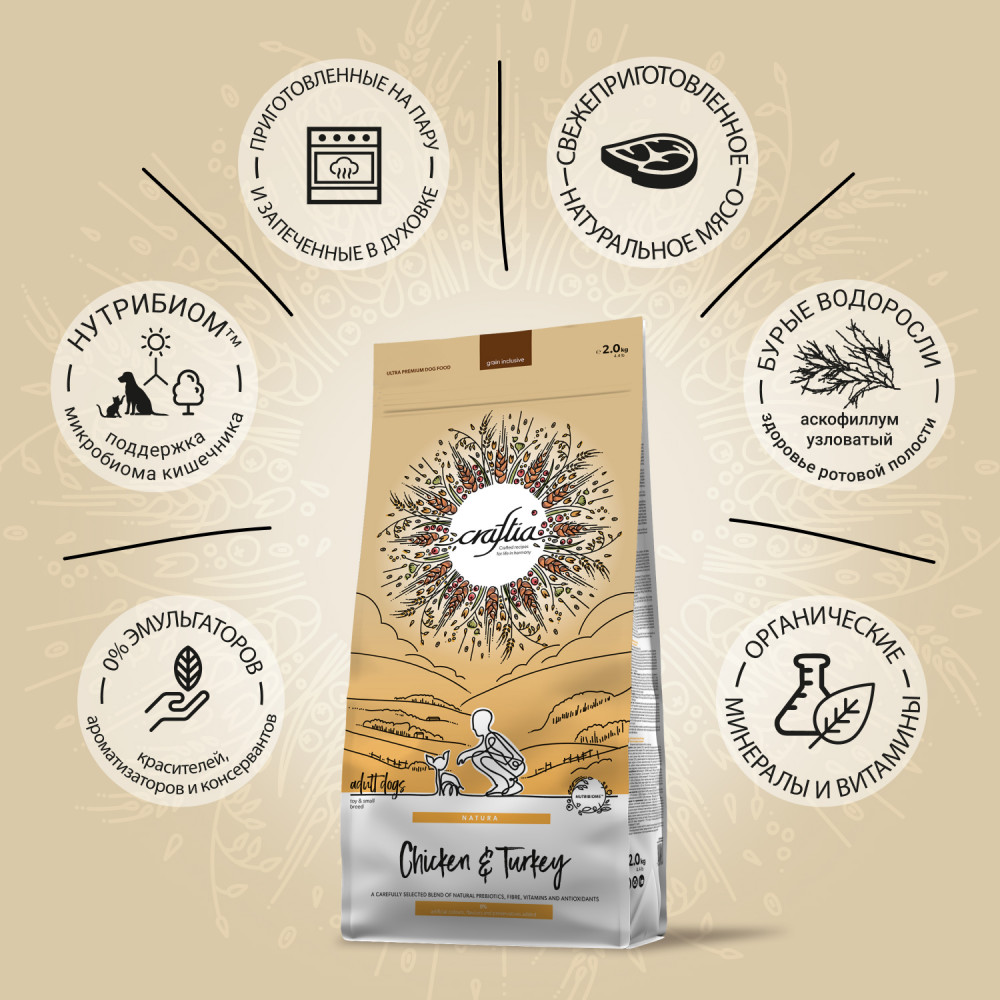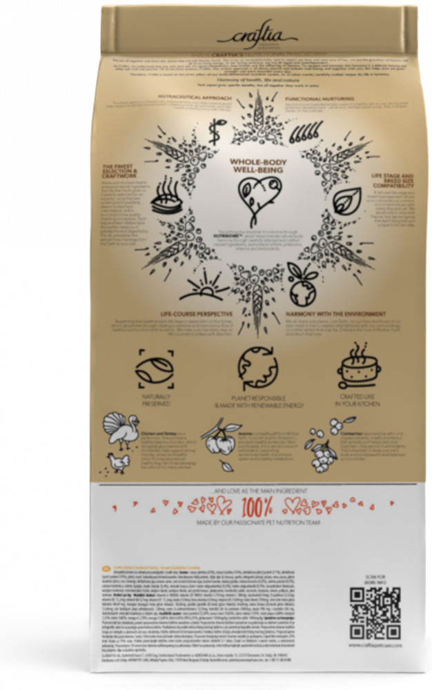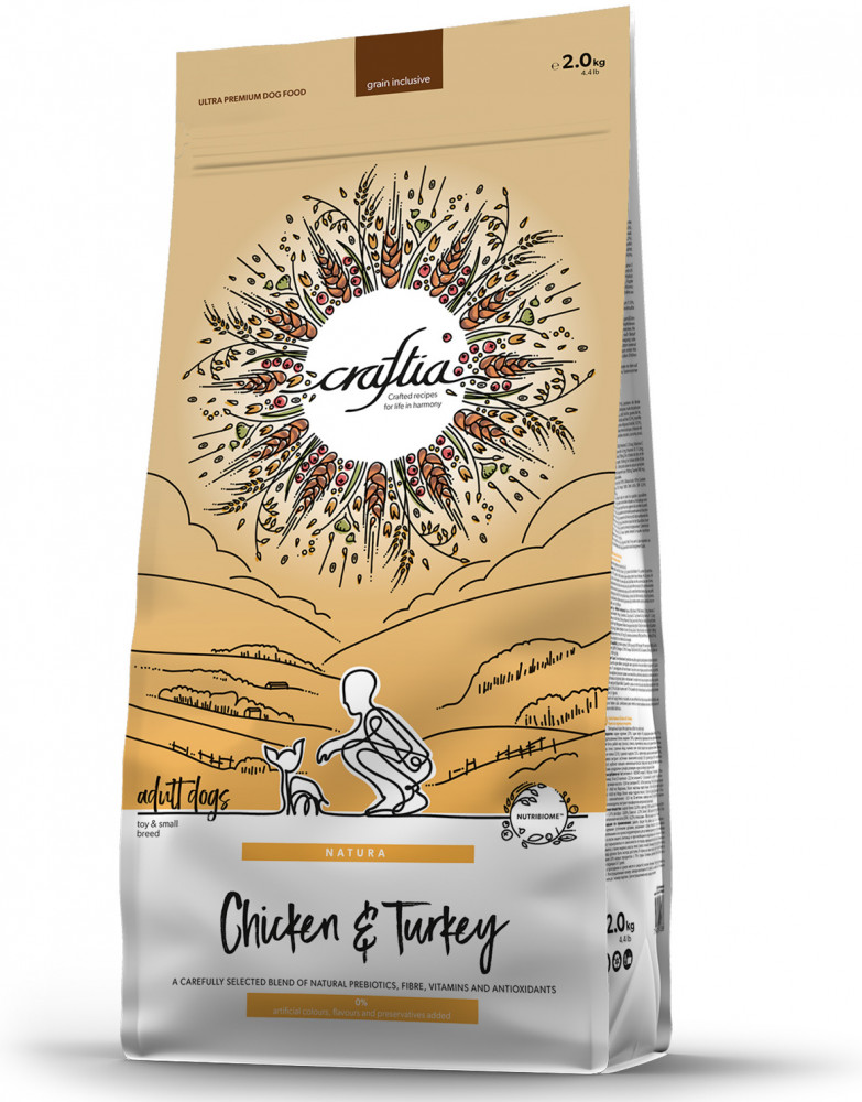 Craftia Корм для взрослых собак миниатюрных и мелких пород из курицы и индейки «Natura»