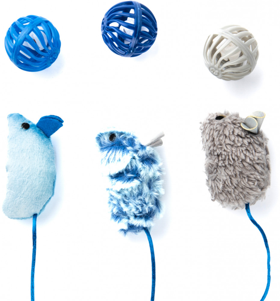 Увлекательный сет игрушек для кошек, состоящий из 3 мячиков и 3 мягких мышек. Мышки оформлены хвостиками с перьями. Интересные цвета, заманчивые звуки шуршания, аромат кошачьей мяты и перышки не оставят ни одну кошку равнодушной. |