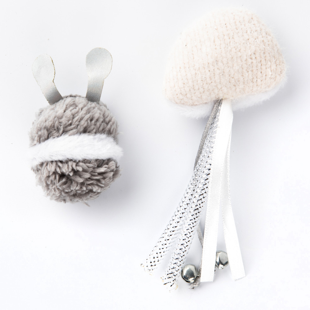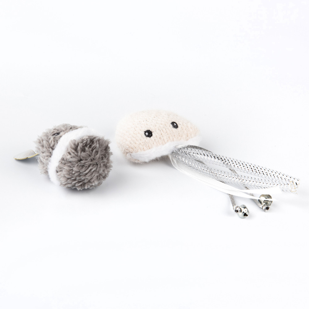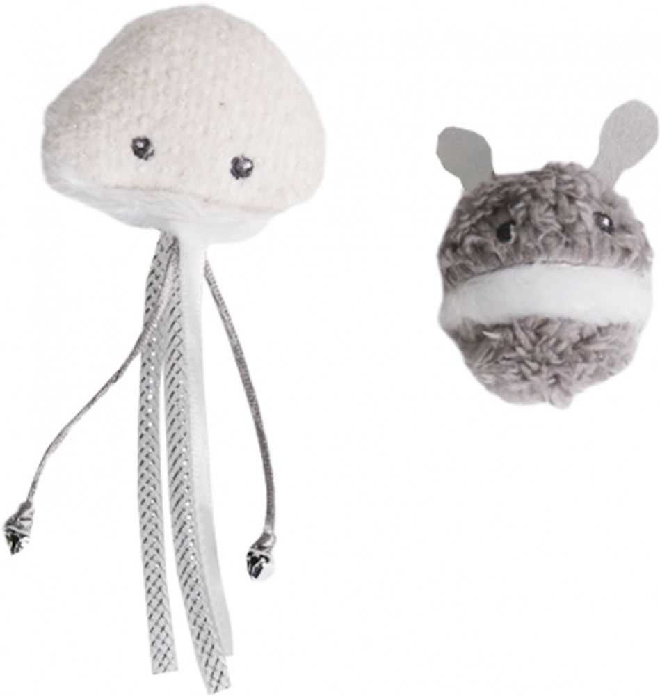 Увлекательный сет игрушек для кошек, состоящий из 2 частей: текстильного осьминога и мягкой игрушки-инопланетянина с лентами и бубенчиками. Интересные цвета, заманчивые звуки шуршания, аромат кошачьей мяты и перышки не оставят ни одну кошку равнодушной. |