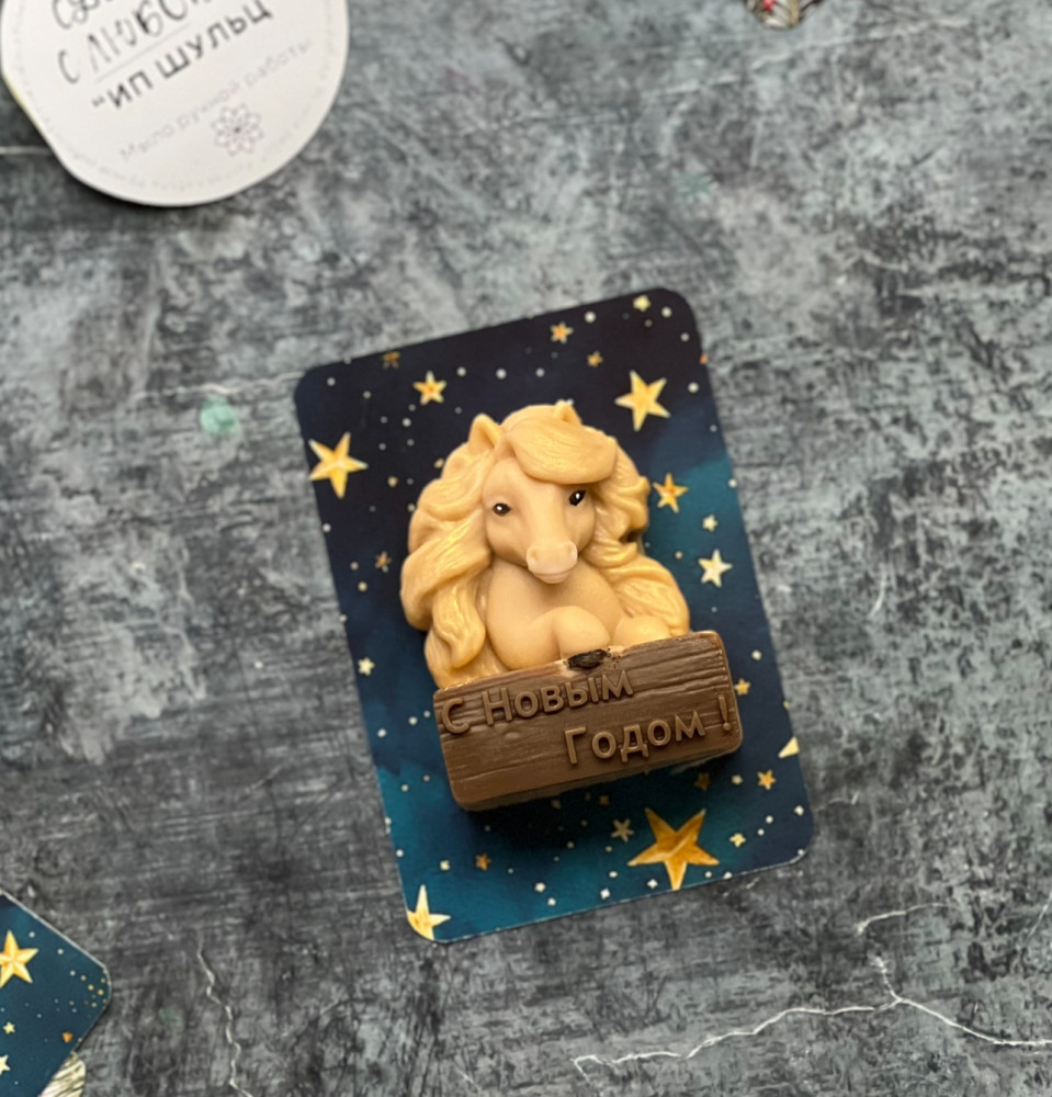 Мыло ручной работы с открыткой «Лошадка С Новым Годом»новинка
