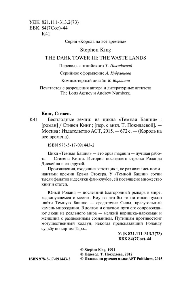 💳 Оплатить за товар можно при получении 🇰🇿 Есть бесплатная доставка по Казахстану 🎁 Копите бонусы с каждой покупки Серия: Король на все времена Цикл «Темная Башня» — это opus magnum — лучшая работа — Стивена Кинга. История последнего стрелка Роланда Дискейна и его друзей. |