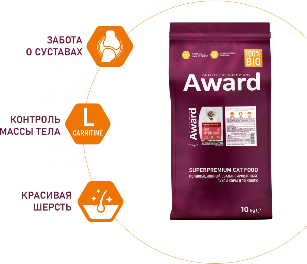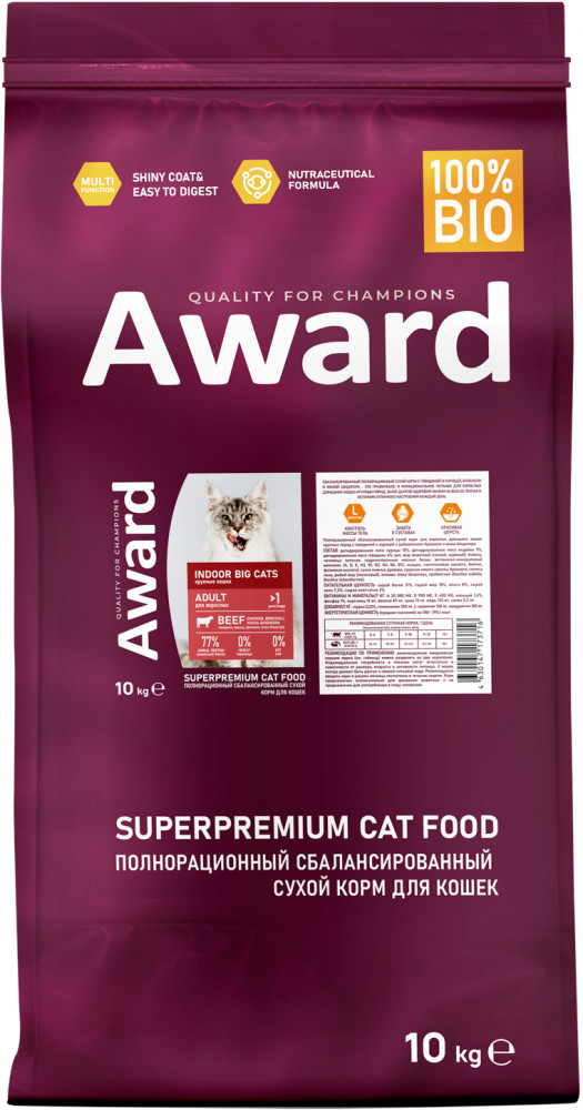 Award Корм для кошек крупных пород с говядиной и курицей «Indoor Big cats»