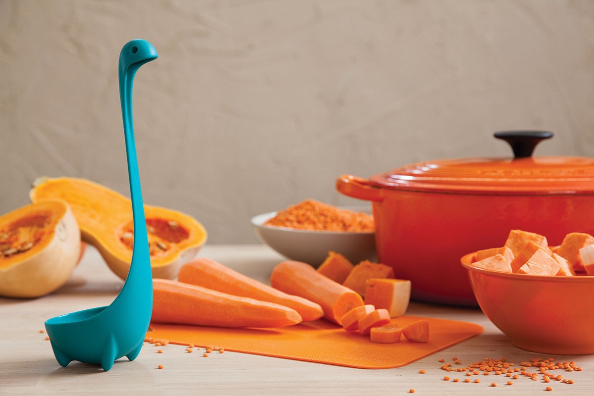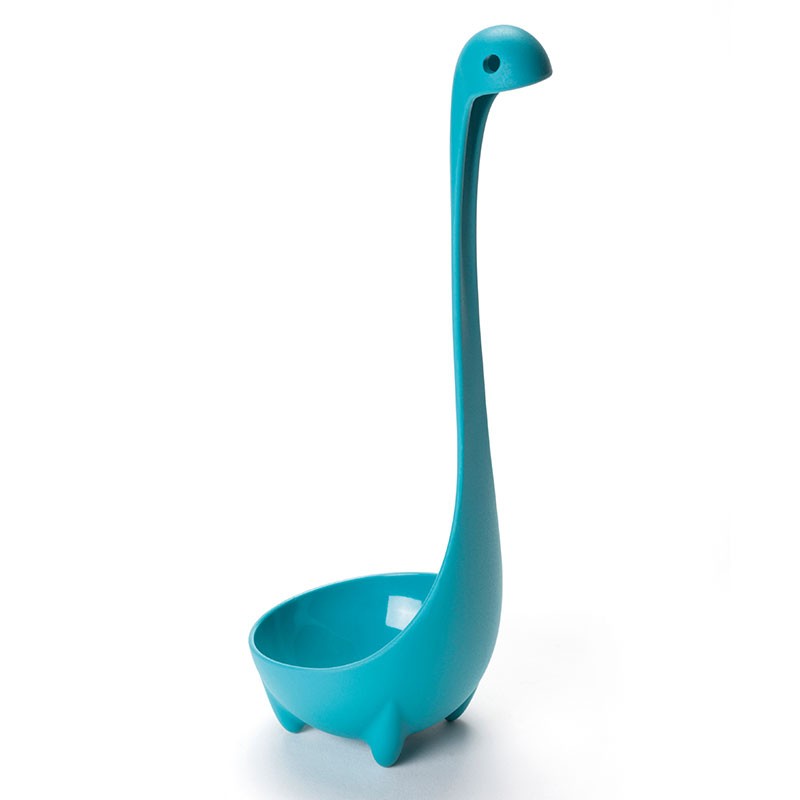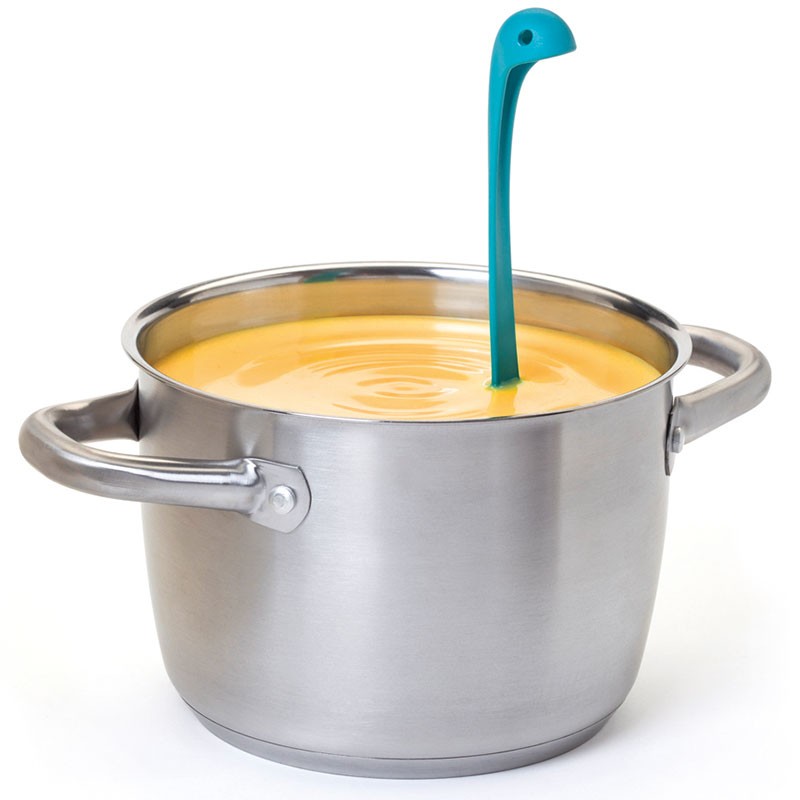 Забавный персонаж поселился на кухне и разгуливает по столешницам. Приятный материал. Годится для кастрюль с глубиной около 16 см, в более глубокой утонет. Привлекает внимание гостей, как маленьких, так и взрослых. Из минусов - не очень удобно набирать суп со дна кастрюли. Но поставить оценку меньше "5" рука не поднимается. Уж очень мы полюбили Несси:)