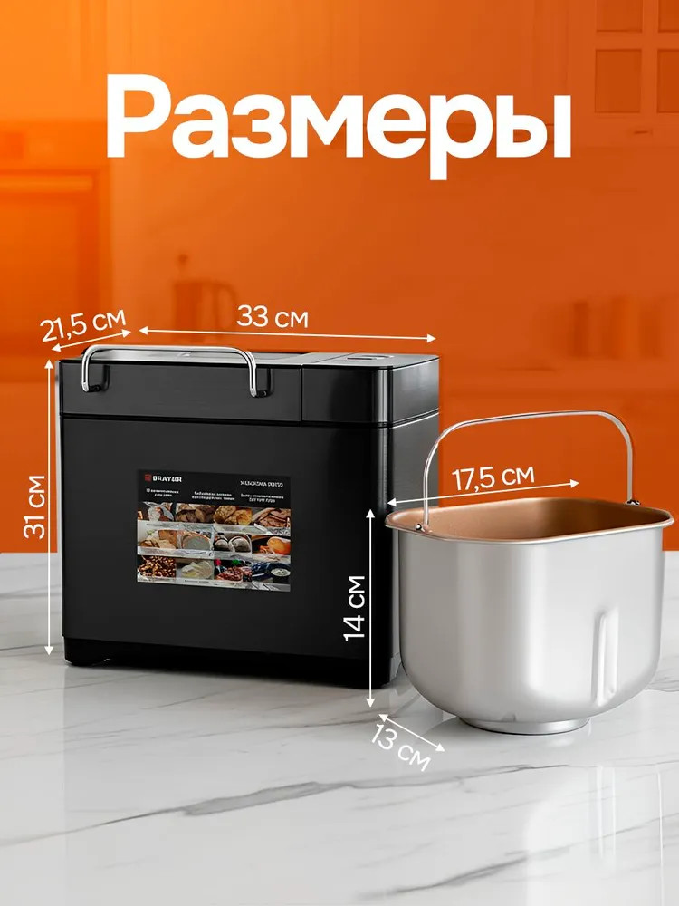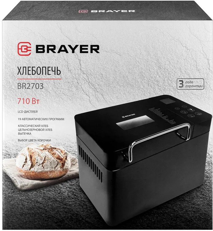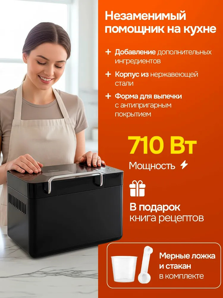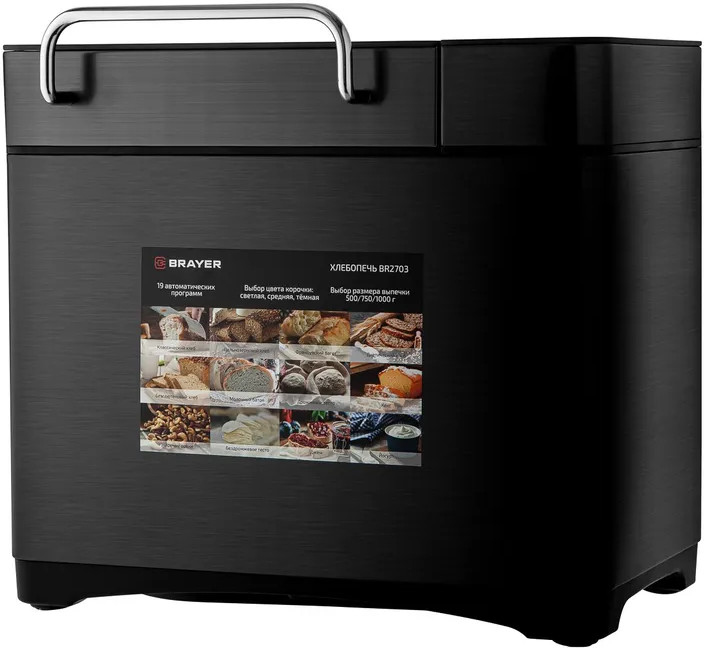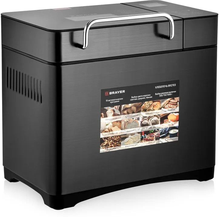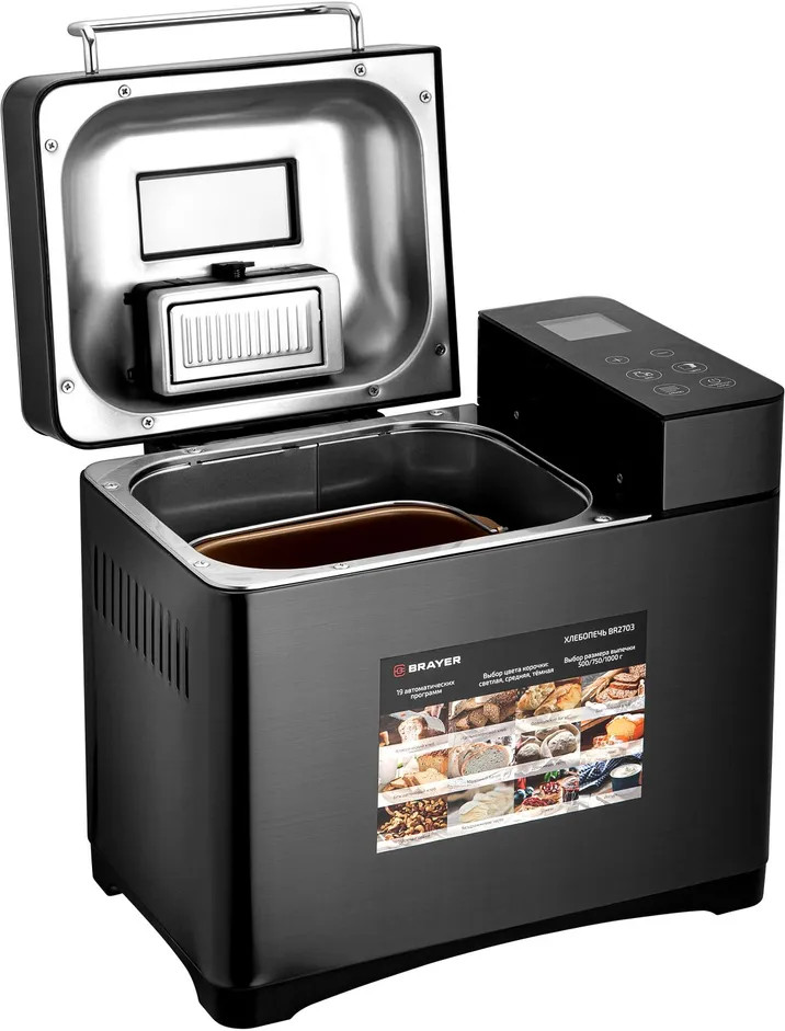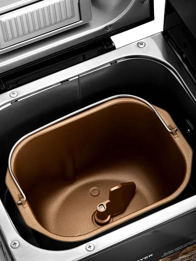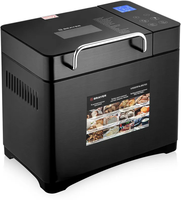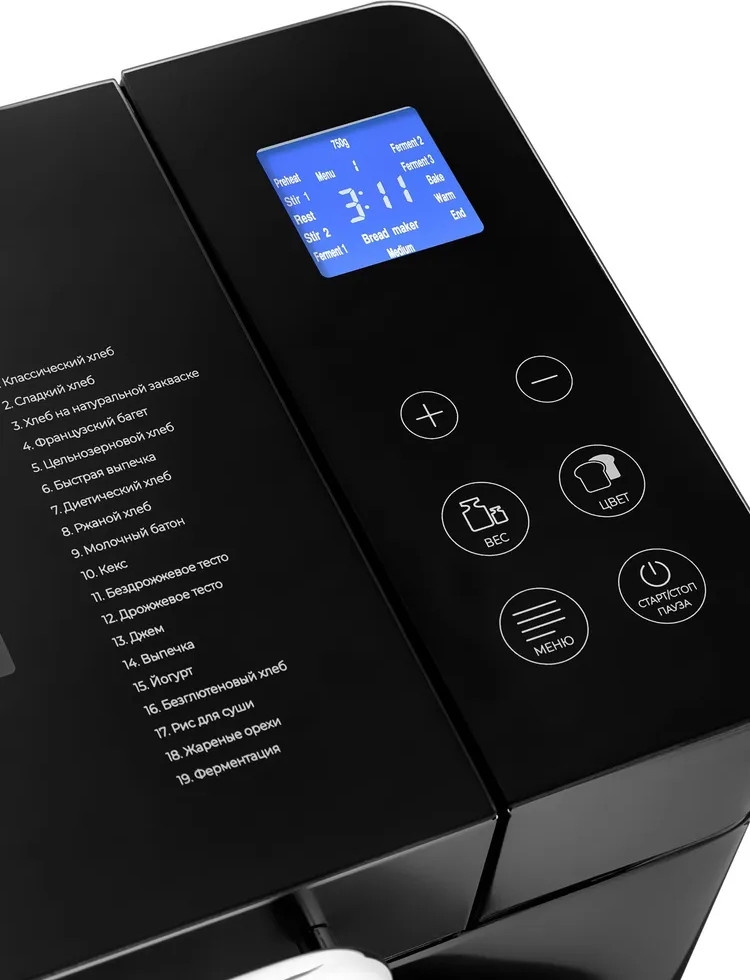 Хлебопечь с корпусом из нержавеющей стали оснащена LCD-дисплеем для удобного выбора программ и контроля температуры теста. В комплекте предусмотрены мерные ложка и стакан, что облегчает добавление ингредиентов и точный замес. Устройство предлагает более 19 автоматических программ выпечки с возможностью выбора размера от 500 до 1000 грамм и степени корочки: светлая, средняя или темная. Функция отложенного запуска и таймер на 15 часов позволяют планировать процесс приготовления заранее. |