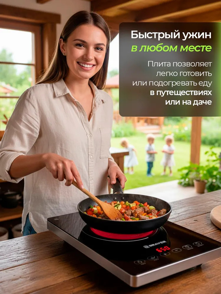 💳 Оплатить за товар можно при получении 🇰🇿 Есть бесплатная доставка по Казахстану от 1 дня 🎁 Копите бонусы с каждой покупки Инфракрасная настольная плитка с сенсорным управлением — отличное решение для быстрой и удобной варки или жарки. Стеклокерамическая панель обеспечивает равномерный нагрев конфорки диаметром до 26 см. Электропитание осуществляется от сети с параметрами 220-240 В и частотой 50-60 Гц, что делает устройство универсальным для дома или дачи. Мощность достигает 2000 Вт, позволяя выбирать между несколькими программами и ступенями мощности для оптимального приготовления пищи. |
