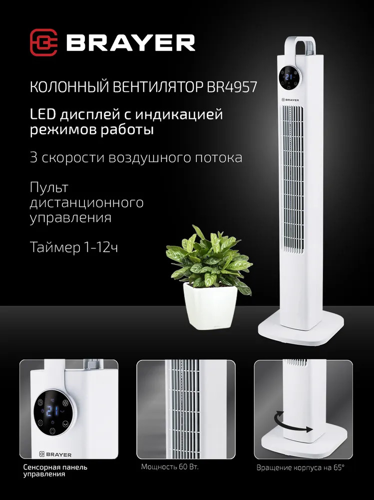 Brayer Вентилятор колонный напольный BR4957