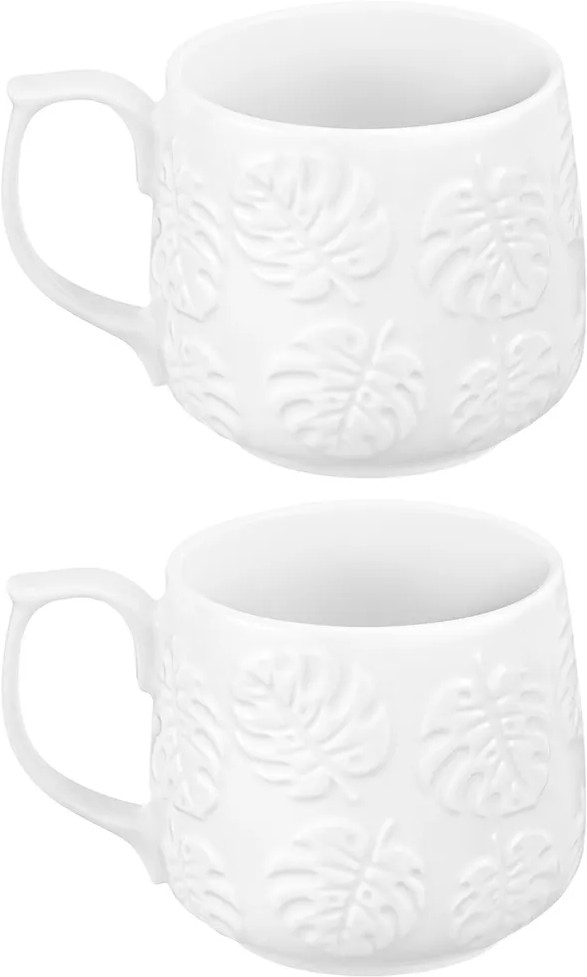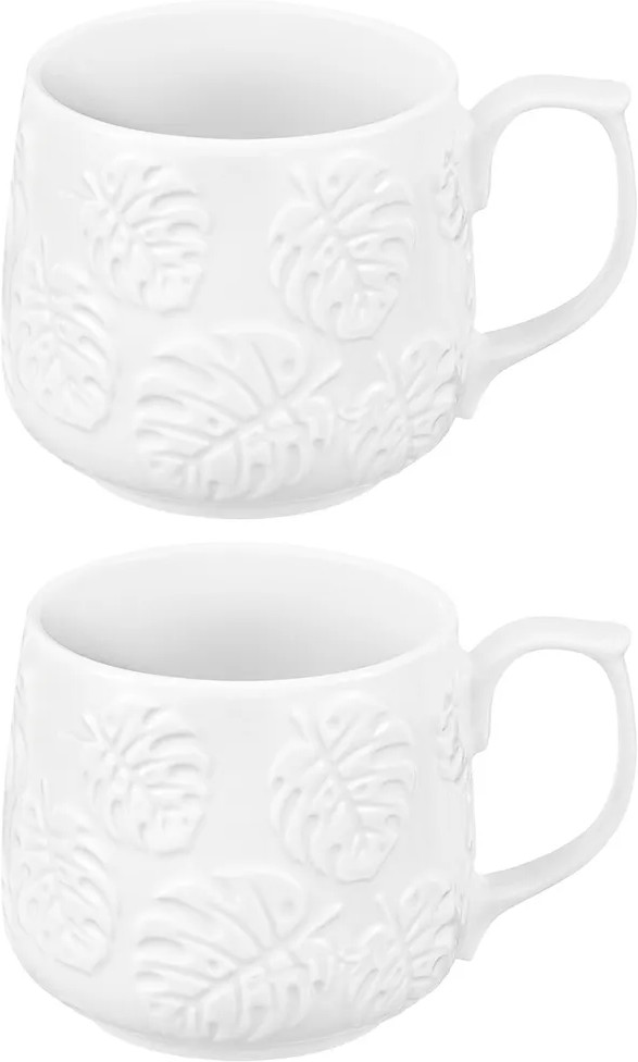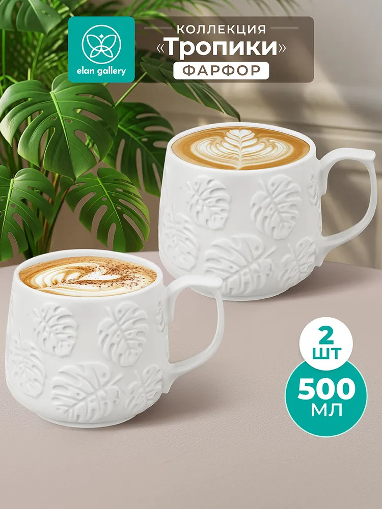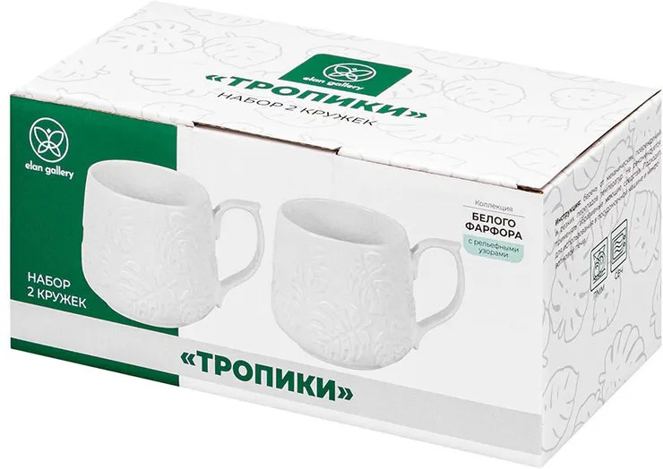 Набор 2 кружек Elan Gallery «Тропики» выполнен из фарфора. Размер каждого изделия 13.5×10×9 см, объём — 500 мл, размер дна — 7 см. Фарфоровые изделия украшены рельефным узором с тропическими листьями. Каждая кружечка подходит ценителям чая и кофе, которые любят пить из красивой и необычной посуды. Это отличный вариант для того, чтобы согреться горячим какао зимой и освежиться прохладным лимонадом летом.